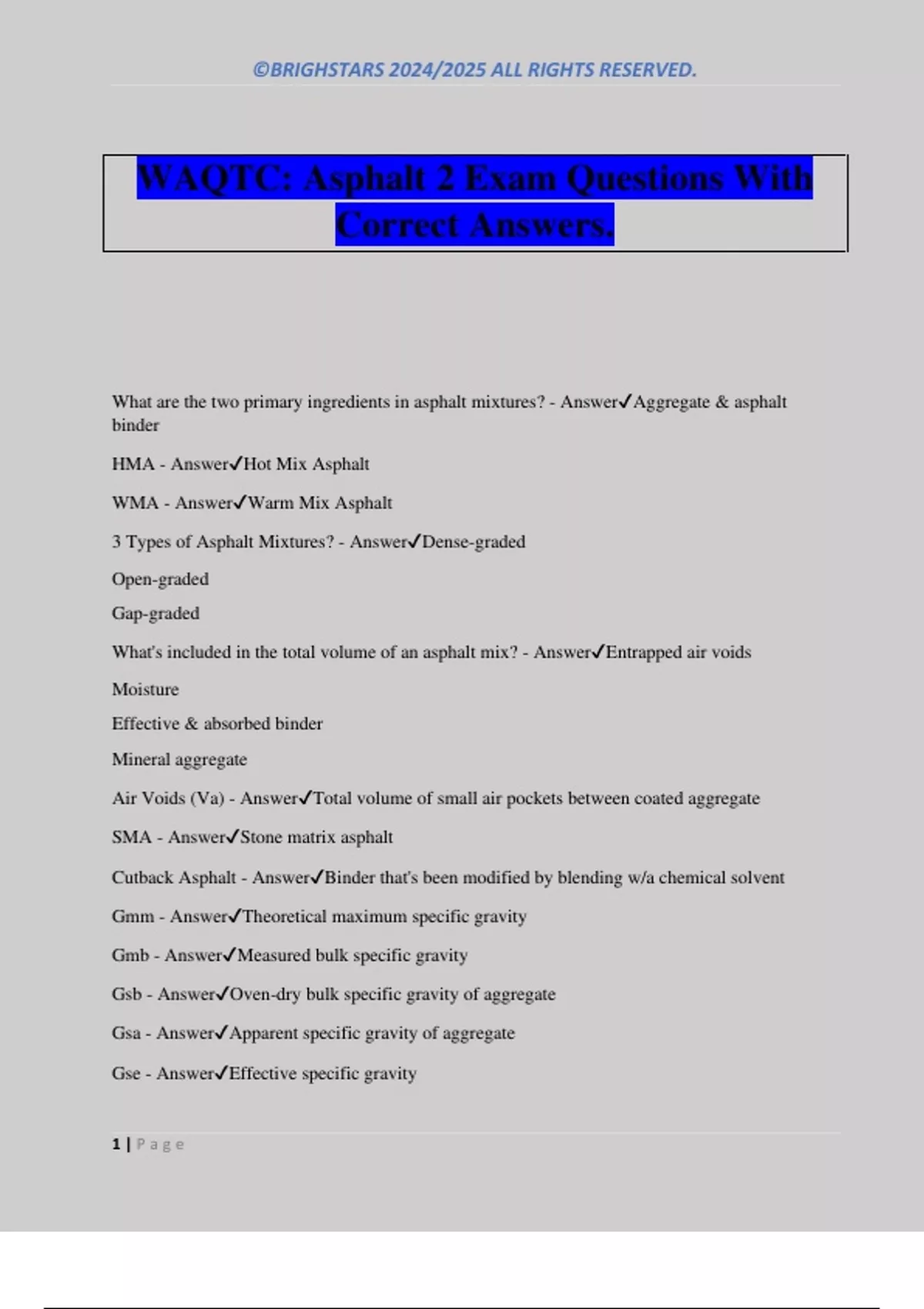 WAQTC: Asphalt 2 Exam Questions With Correct Answers.
