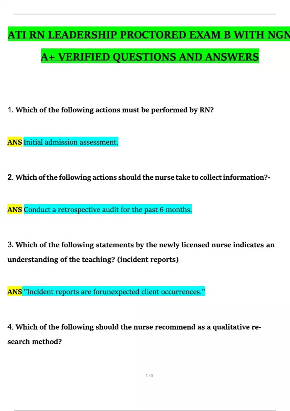 ATI RN LEADERSHIP PROCTORED EXAM A, B, EXAM & RETAKE ( VERSION 5 ) WITH A VERIFIED QUESTIONS AND ANSWERS ( PACKAGE DEAL ) ATI RN LEADERSHIP PROCTORED EXAM A, B, EXAM & RETAKE ( VERSION 5 ) WITH A VERIFIED QUESTIONS AND ANSWERS ( PACKAGE DEAL )