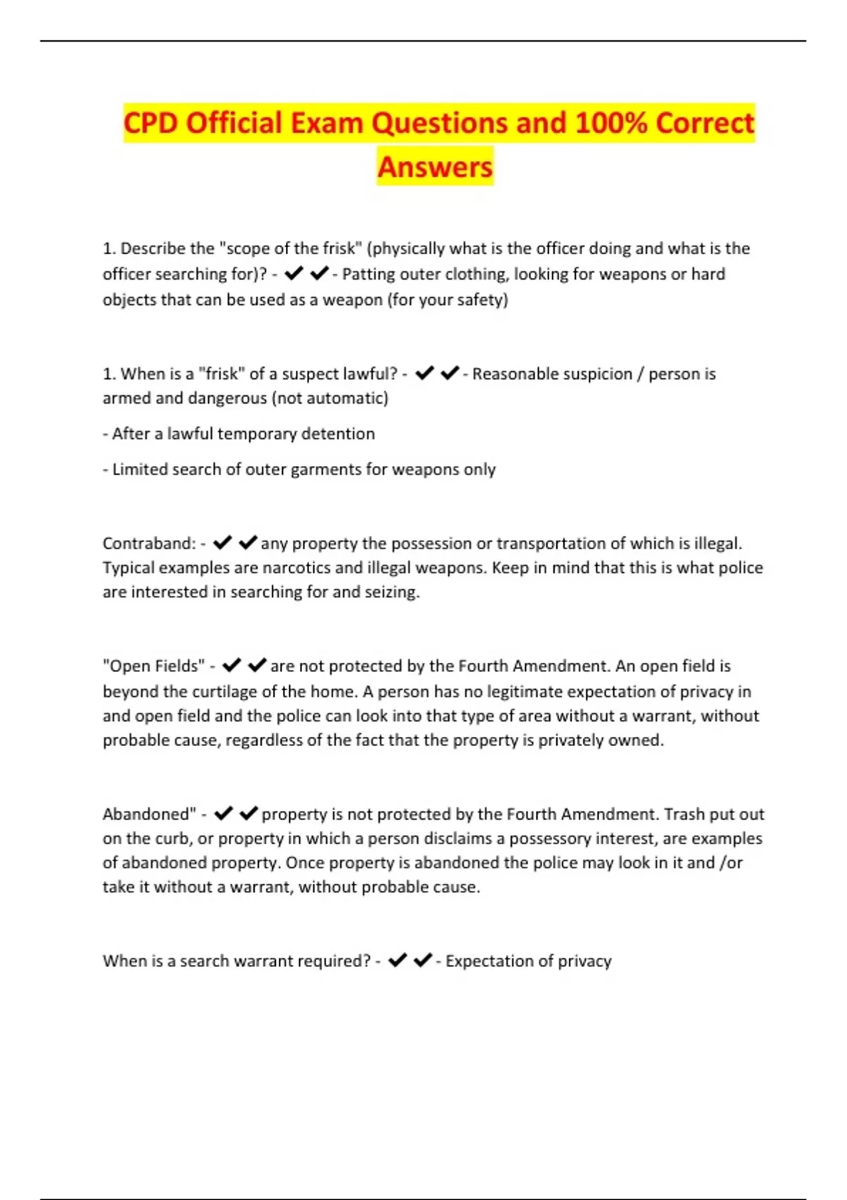 CPD EXAMS BUNDLE | QUESTIONS with Verified 100% Correct Answers