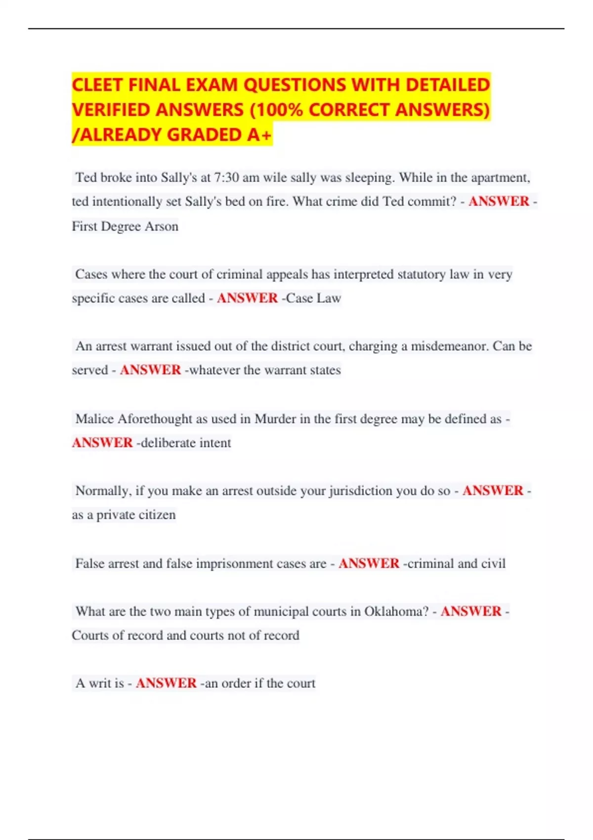 CLEET EXAM BUNDLE |Questions And Well Elaborated Solutions|
