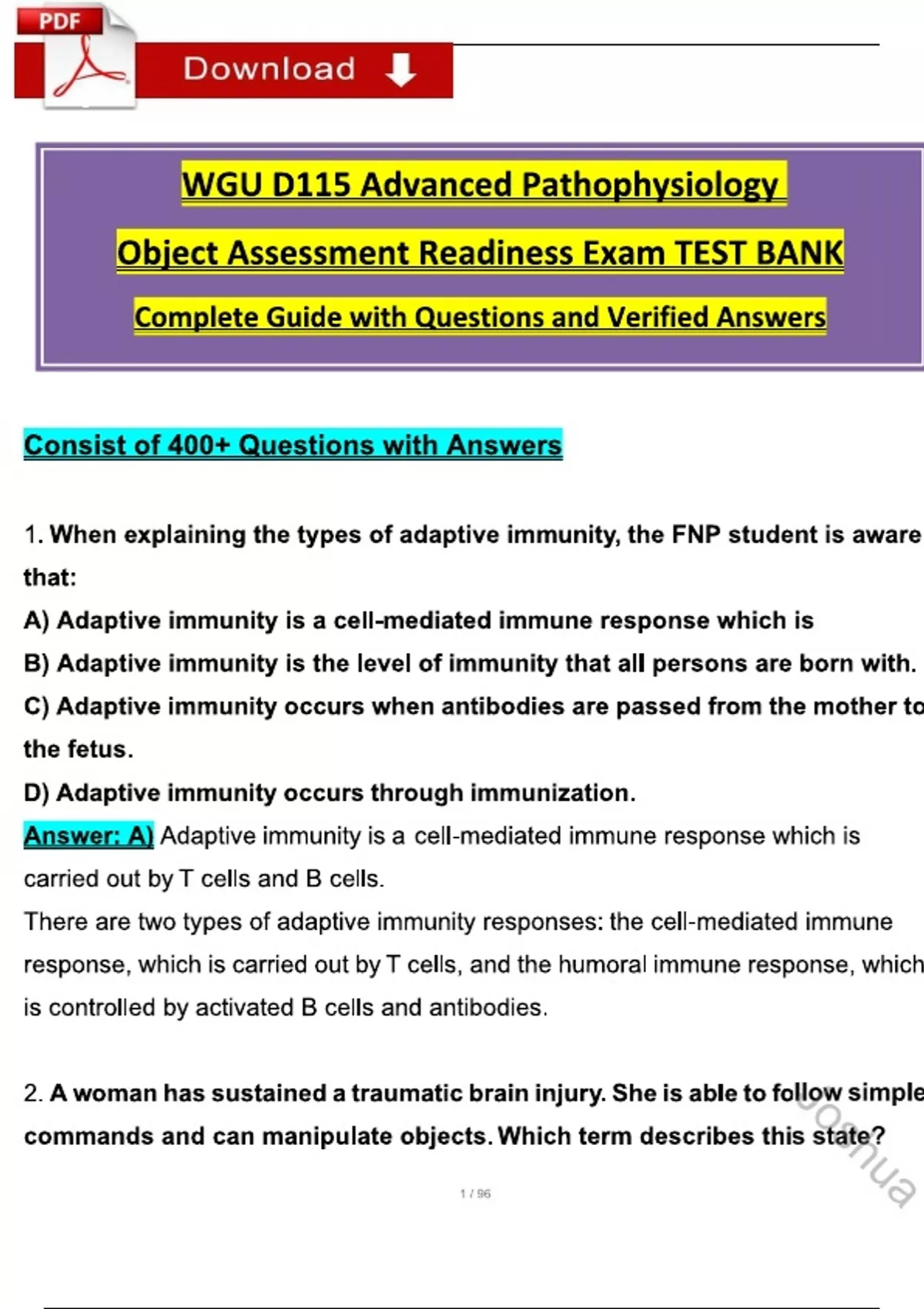 WGU D115 Object Assessment Advanced Pathophysiology Exam + Test Bank and Study Guide (Latest 2025 / 2026): Most Comprehensive with 600+ Qs & Ans - Everything you need to Succeed