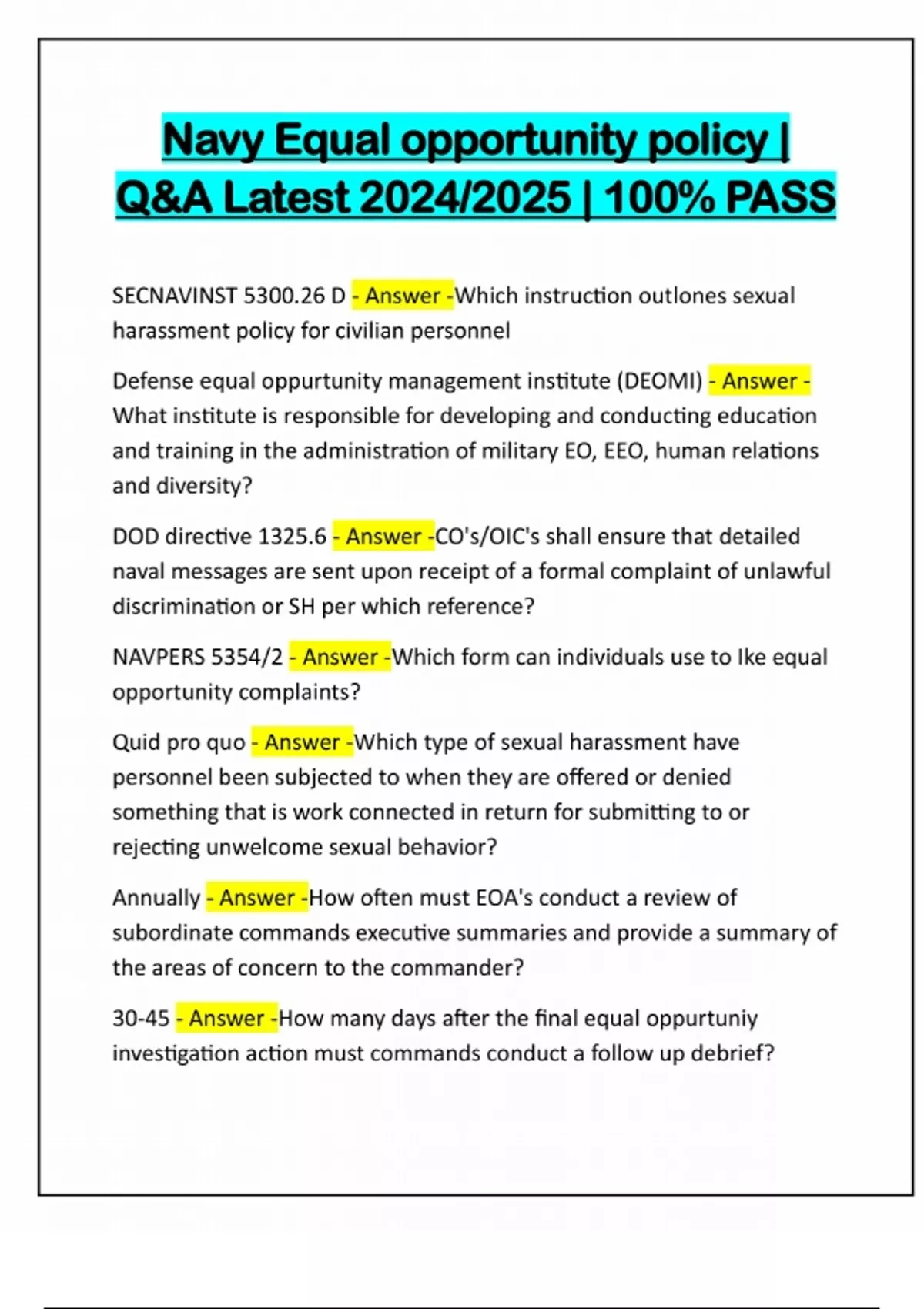 EQUAL OPPORTUNITY ASSIGNMENT | QUESTIONS AND CORRECT ANSWERS | LATEST 2024/2025