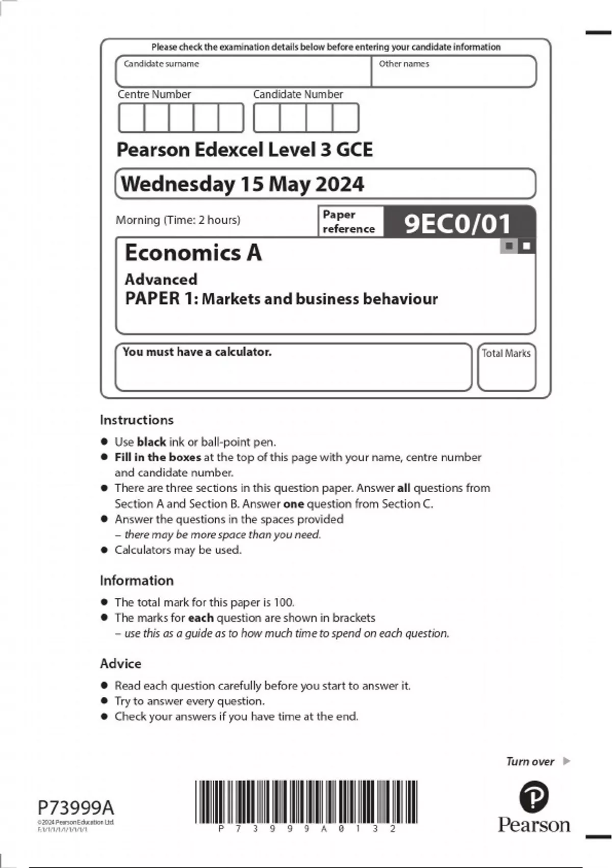 A-Level EDEXCEL 2025 Economics A Paper 1