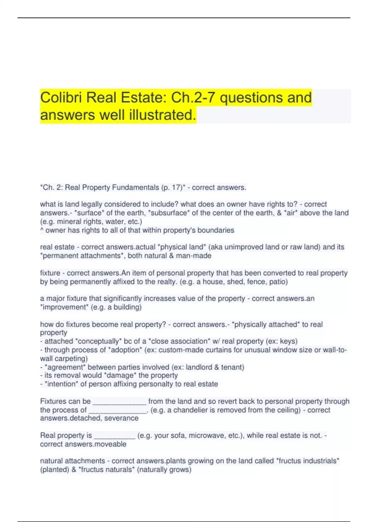 Colibri Real Estate Final Exam Questions And Answers Graded A+.Final Exam: Real Estate Real Estate Express questions and answers 100% verified.Colibri Real Estate Final Exam (KY) 1 Questions And Answers Graded A+.Colibri Real Estate Practice Final Exam Questions And Answers 100% Guaranteed Success.