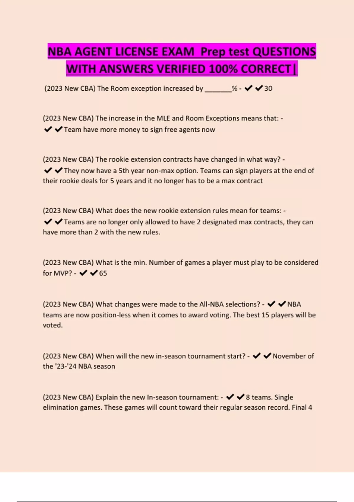 NBA AGENT LICENSE EXAM QUESTIONS WITH ANSWERS VERIFIED 100% CORRECT