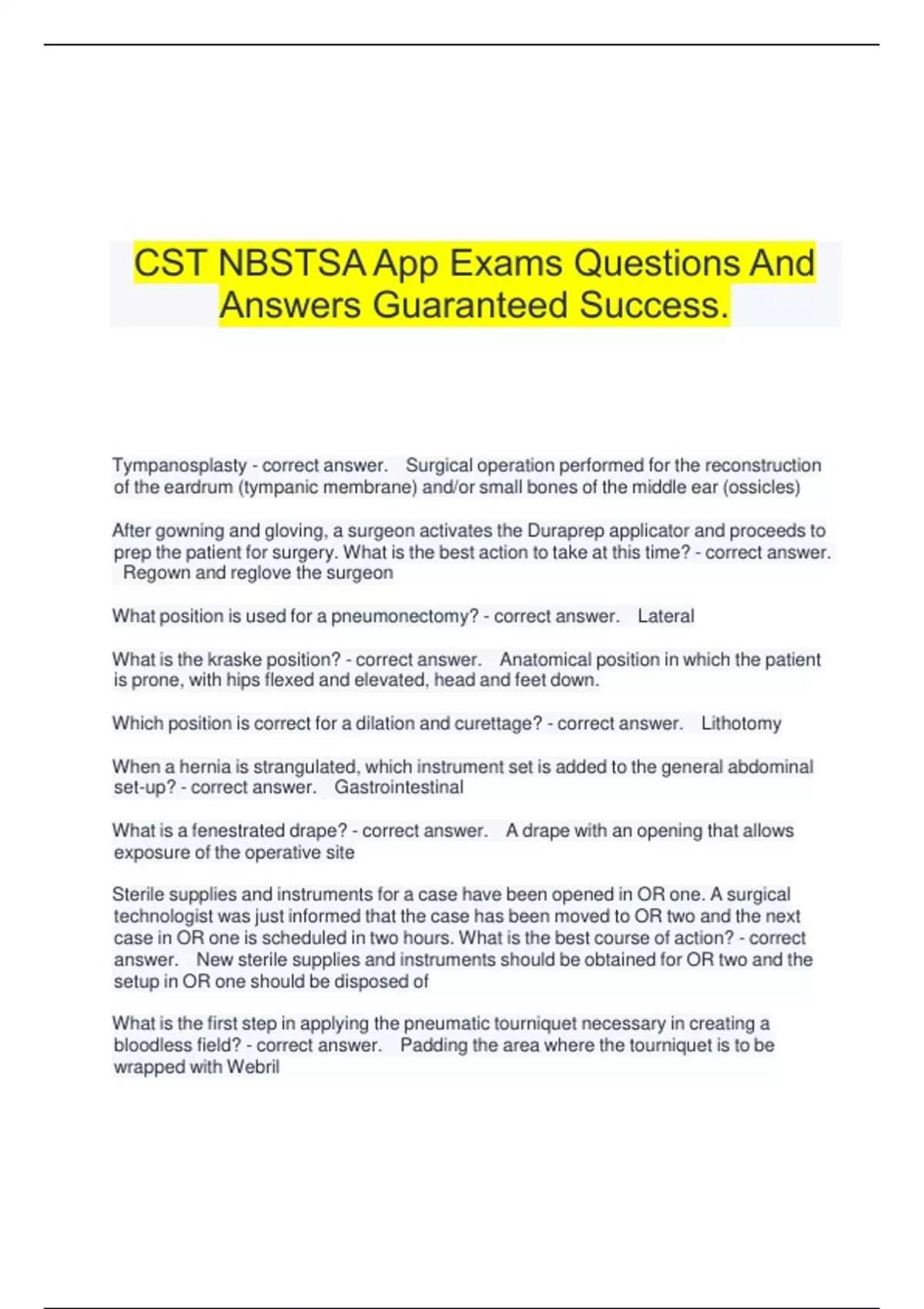 CST - NBSTSA App Questions And Answers Latest Top Score.App Exams Questions And Answers Latest Top Score.NBSTSA Administrative & Personnel Questions And Answers Latest Top Score.Surgical Technology NBSTSA EXAM 2021 Questions And Answers 100% Guaranteed Success.