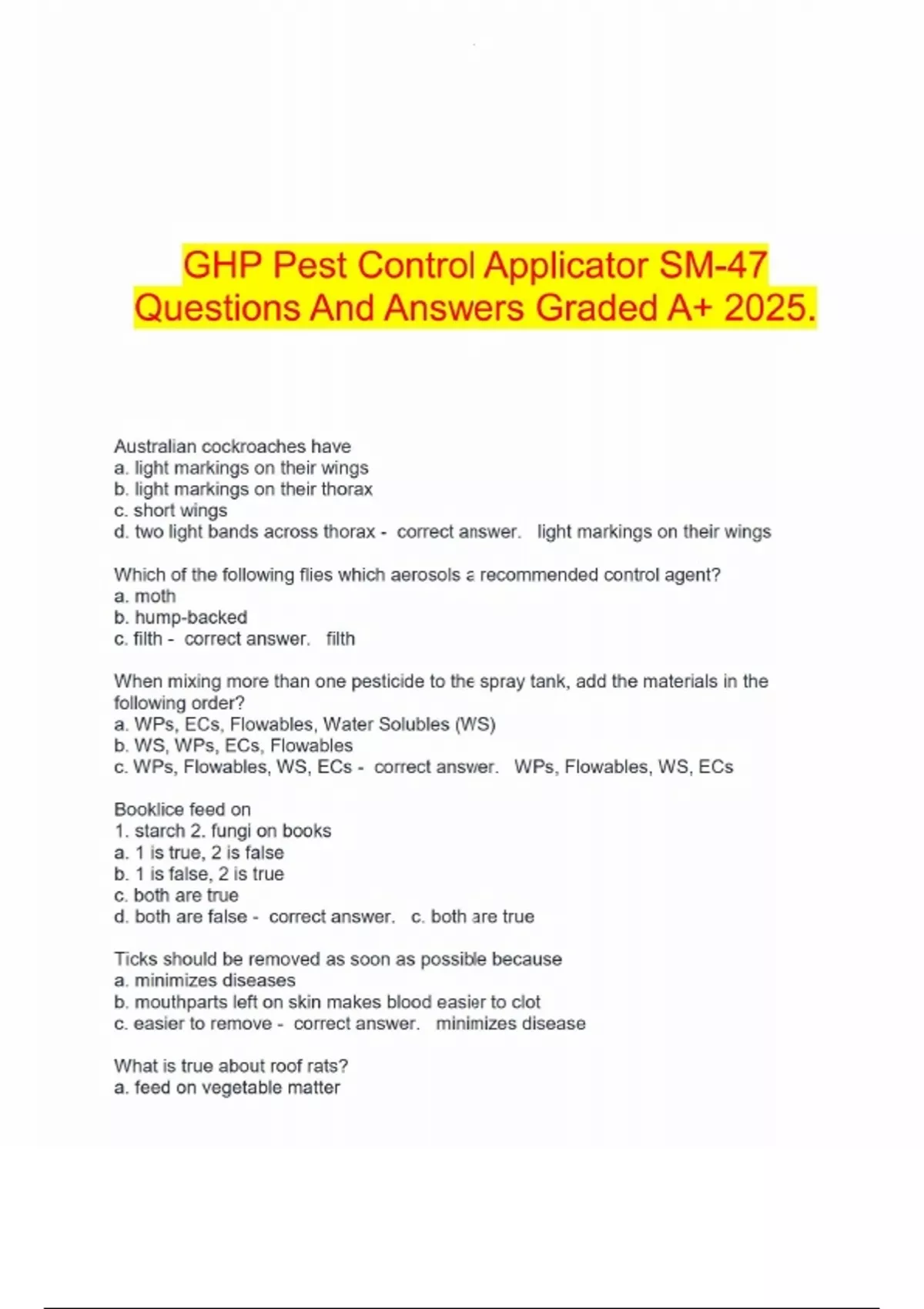 GHP Pest Control Applicator SM-47 Questions And Answers Graded A+ 2025.Final Exam Study Guide GHP Questions And Answers 100% Guaranteed Success.FL GHP Full Exam Answers And Questions Latest Top Score.