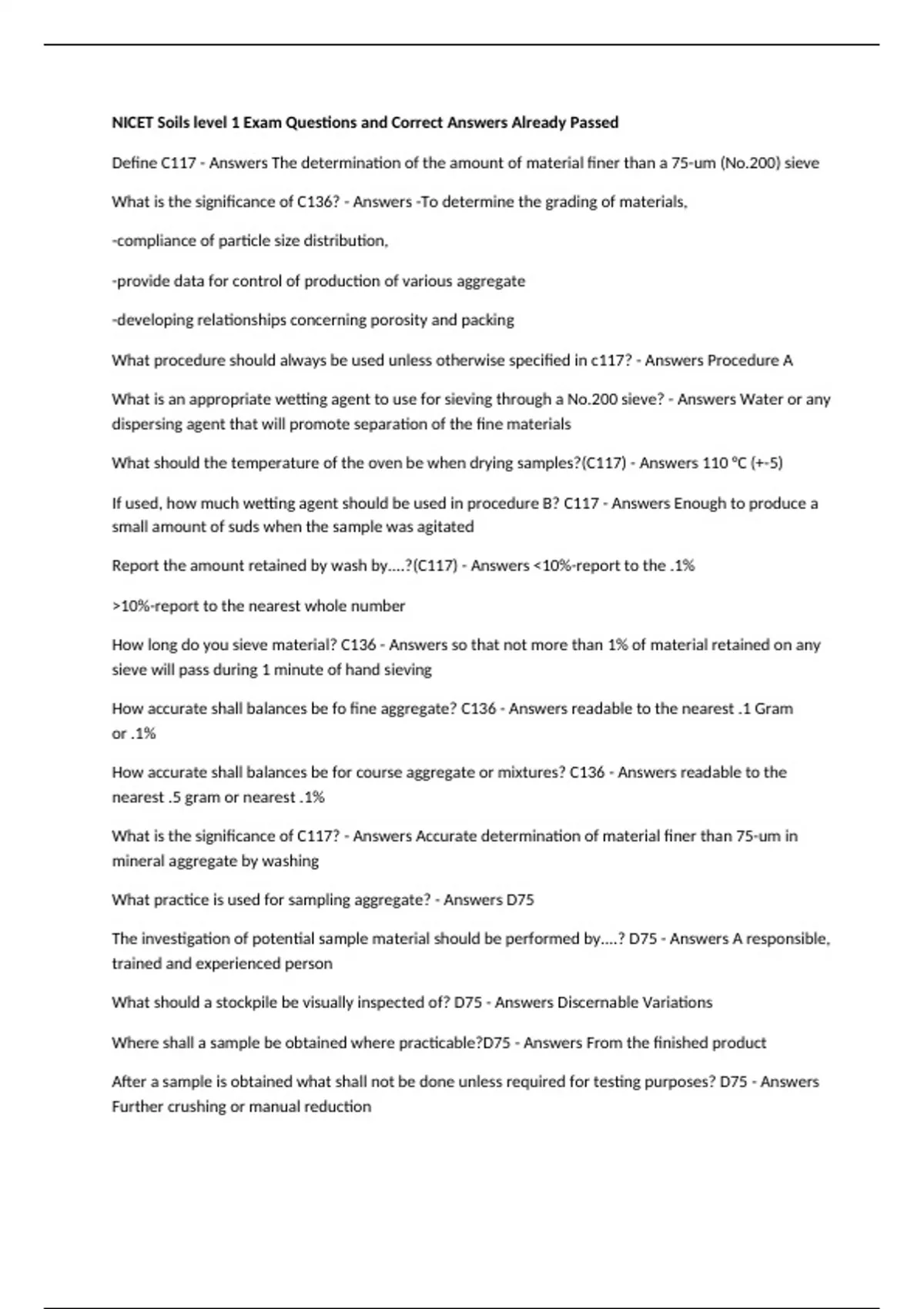 NICET Soils level 1 Exam Questions and Correct Answers Already Passed