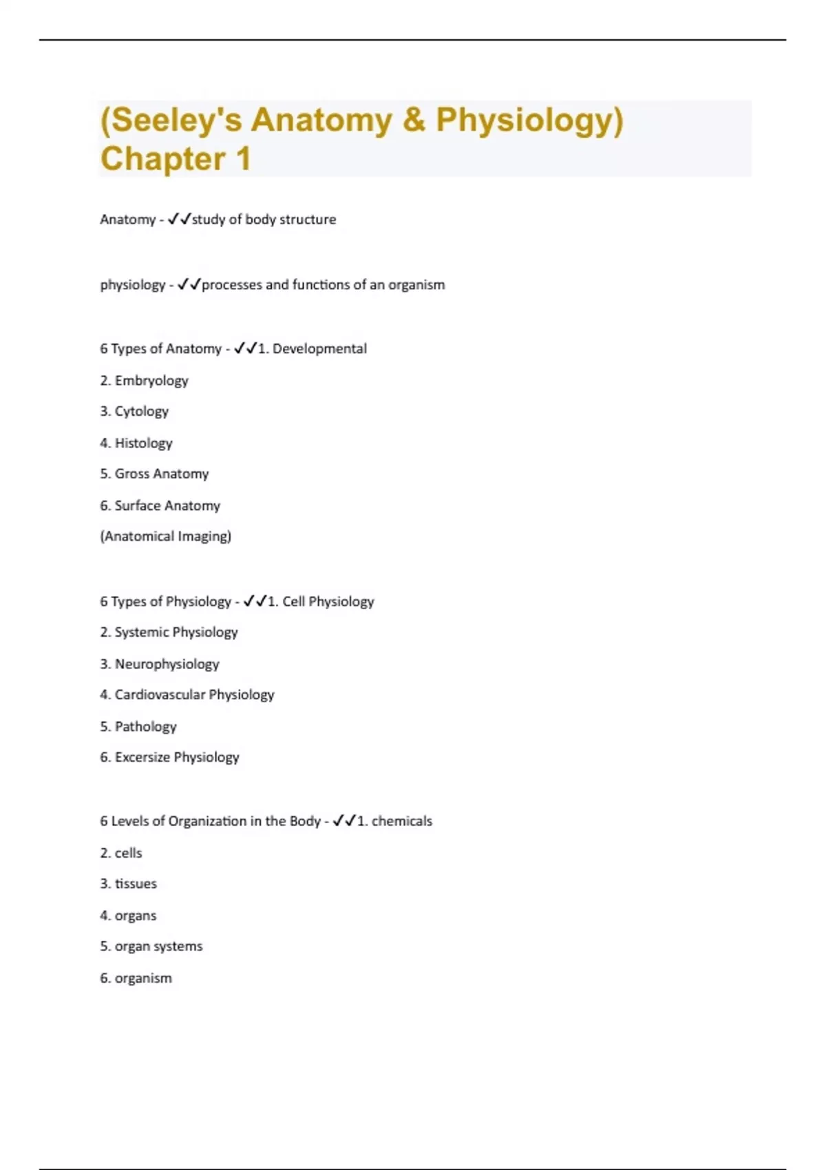 (Seeley's Anatomy & Physiology) Chapter 1 | Questions with 100 % correct Answers | Verified