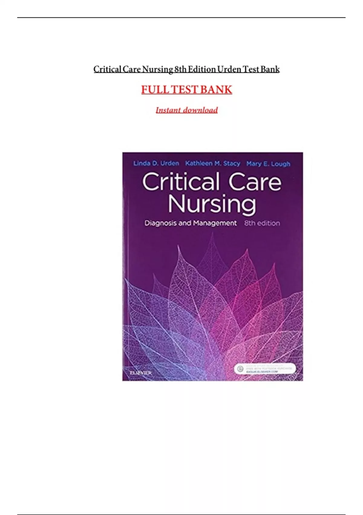 1 Exam (elaborations) Test Bank for Priorities in Critical Care Nursing, 8th Edition (Urden, 2024), Chapter 1-27 | All Chapters 2 Exam (elaborations) Test Bank for Priorities in Critical Care Nursing, 9th Edition (Urden, 2024), Chapter 1-27 | All Chapters