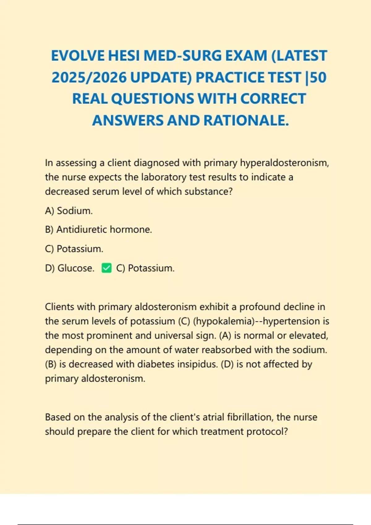 HESI MED-SURG Exams PACKAGE DEAL| BUNDLE contains the Latest 2025/2026 Evolve Exam Prep Questions, review, practice test and Test Banks with Correct and Detailed Answers - Guaranteed Success for HESI Medical Surgical exams.