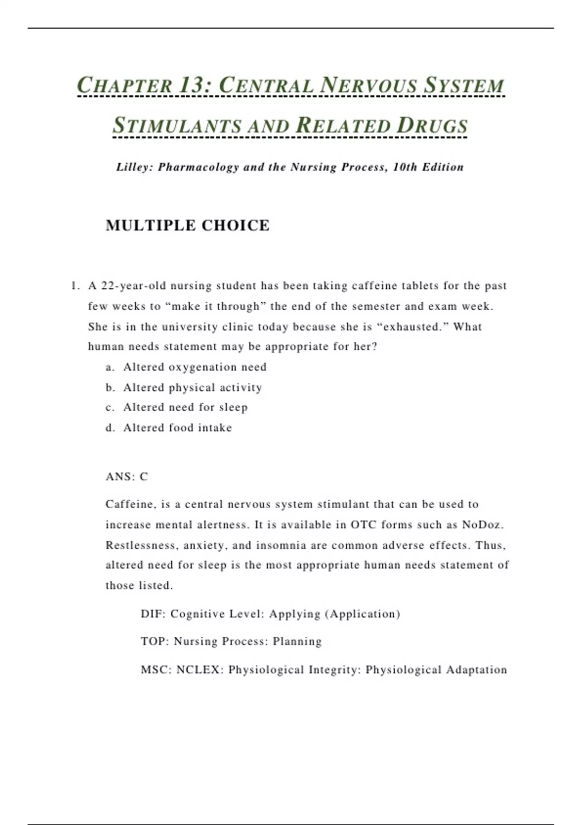 CHAPTER 13: CENTRAL NERVOUS SYSTEM STIMULANTS AND RELATED DRUGS