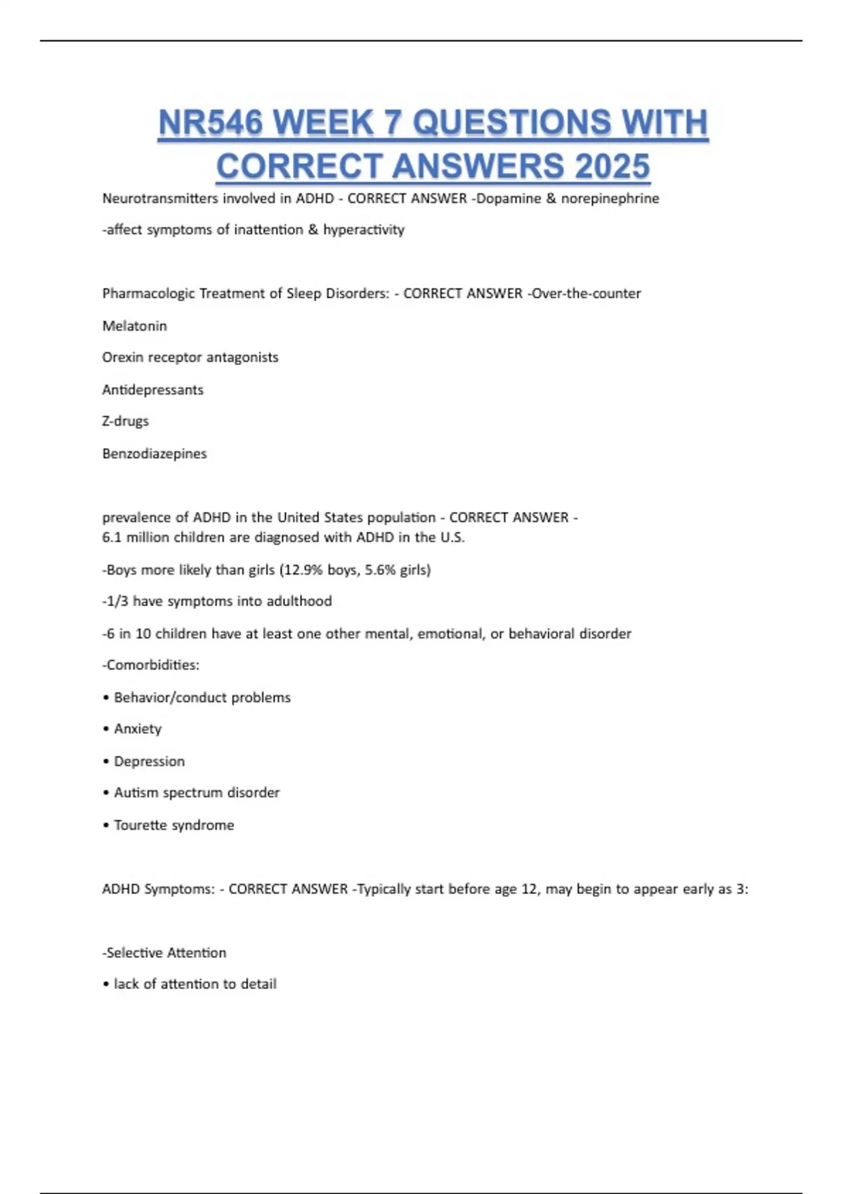 NR 546 / NR546 (NR546) Exams Questions with 100% Correct Answers | Latest Version (2025) Expert Verified