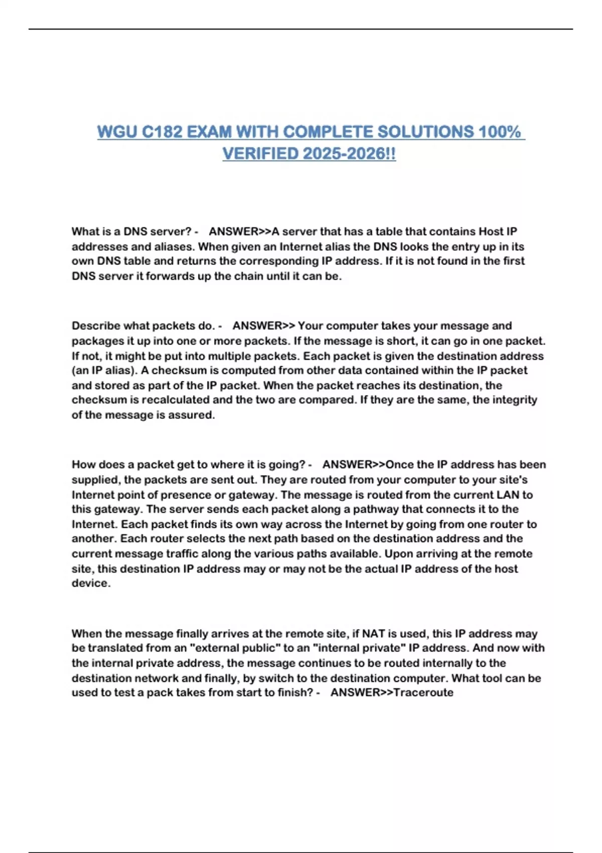 WGU C182 PACKAGED EXAMS WITH 100% VERIFIED SOLUTIONS UPDATED !!!