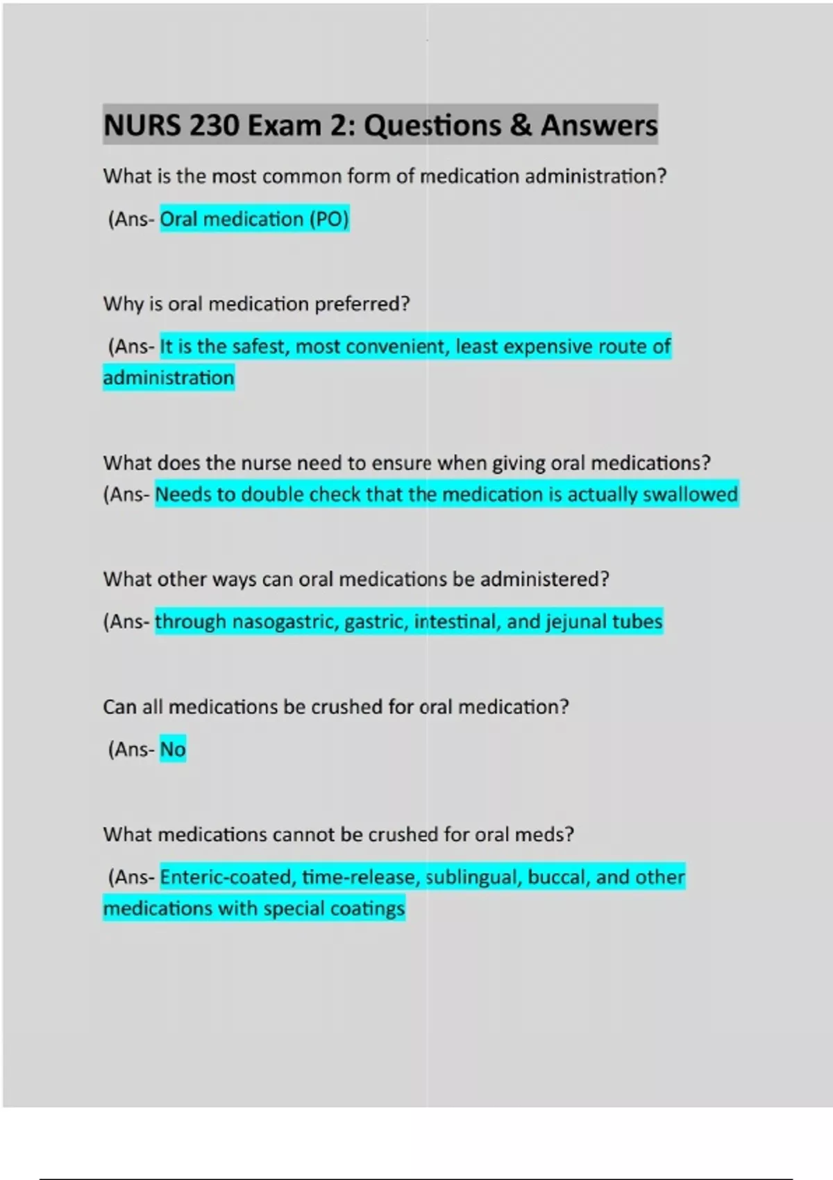 NUR 230 Exam 1: NUR 230 Exam 2: NUR 230 Exam 3:NUR 230 Final Exam:100% Verified Questions & Answers: Latest Updated A Guide Solutions