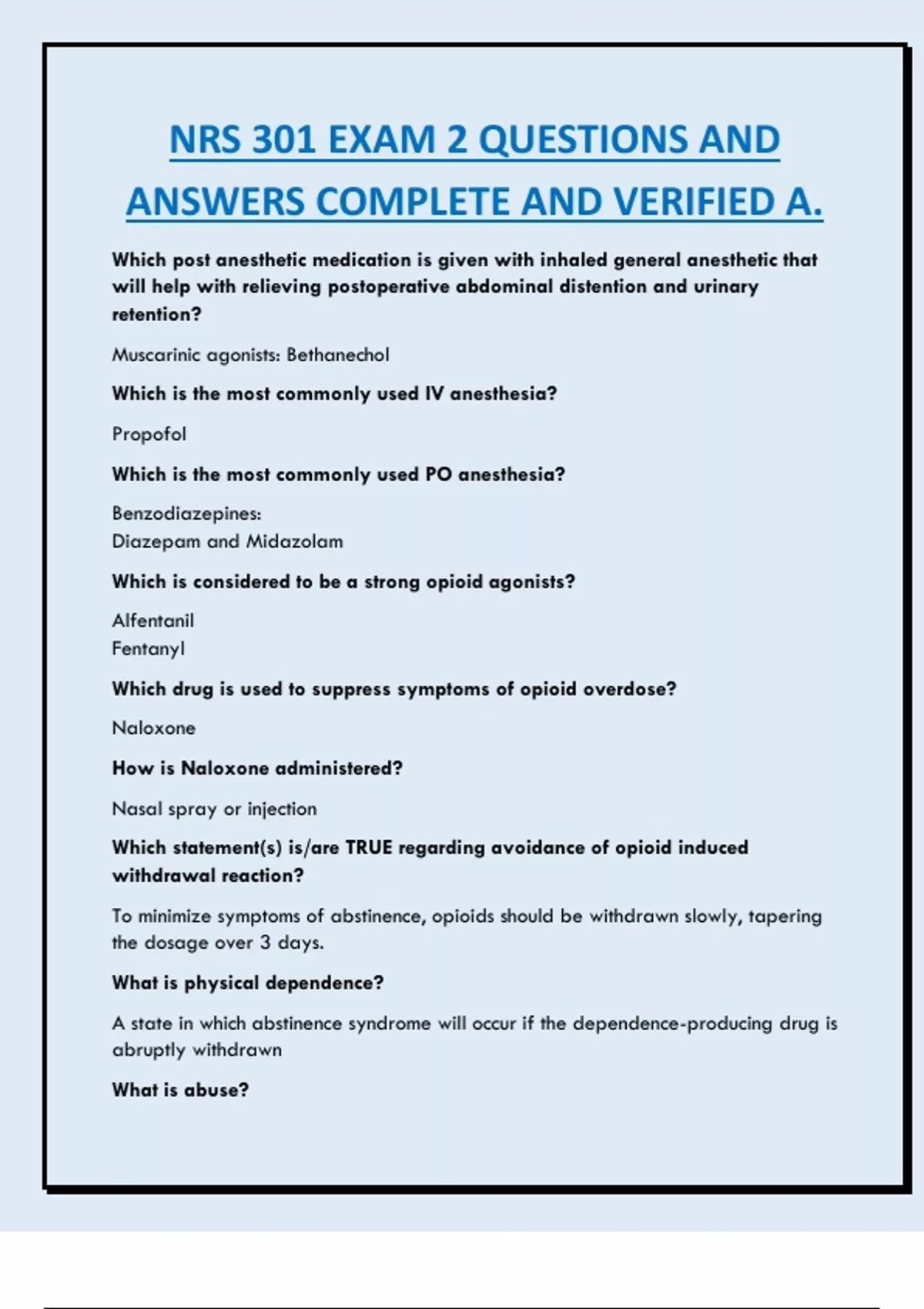 COMBINED NRS 301 (EAQ) EXAMs 1-7 PACKAGE DEAL WITH ALL INFORMATION YOU NEED TO PASS|100% VERIFIED.