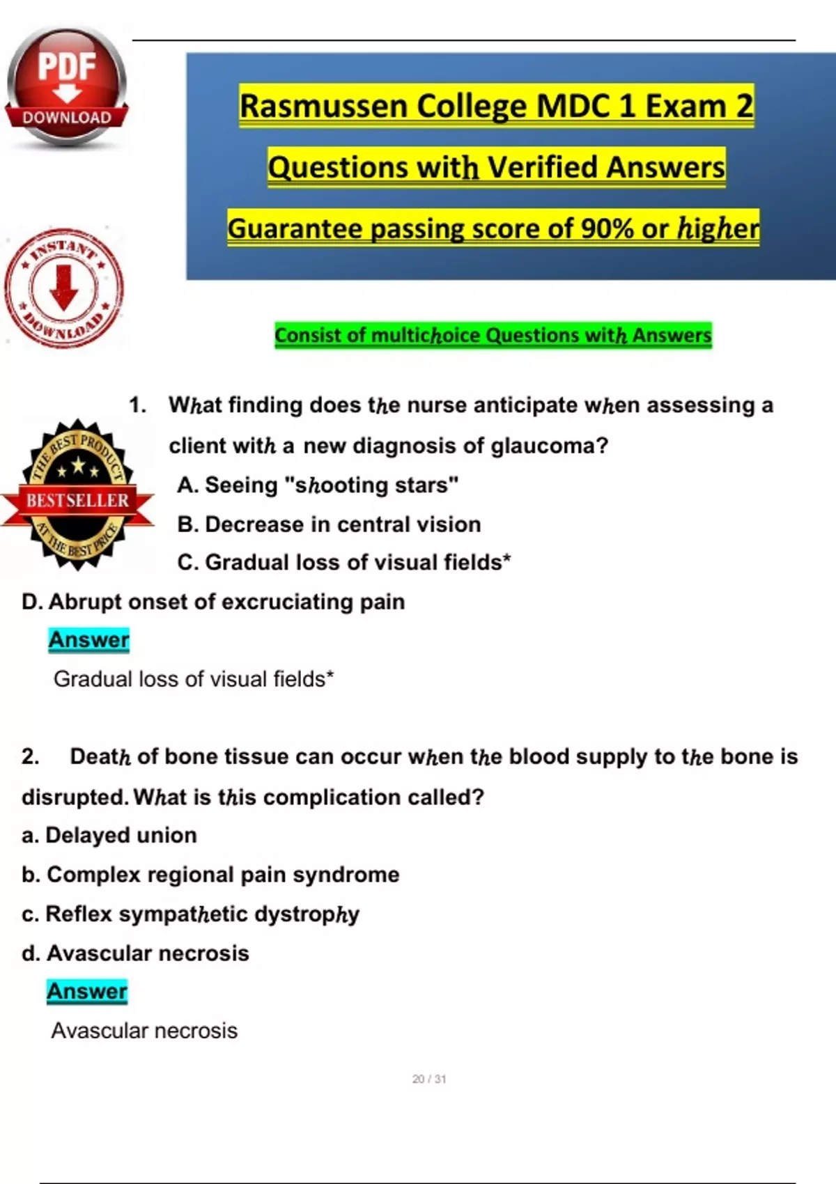 Study Bundle for NUR2356 / NUR 2356 MDC 1 Exam 2 (Latest 2025 / 2026): Most Comprehensive Qs & Ans - Everything you need to Succeed