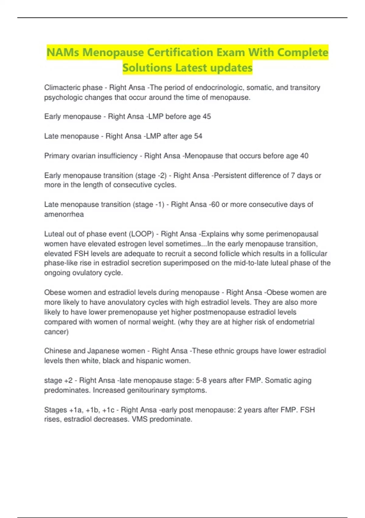 NAMs Menopause Certification Exam Questions and Answers Latest Update 2024/2025 & NAMS Menopause Test Questions and Answers Latest Update 2024/2025 - Graded A+.