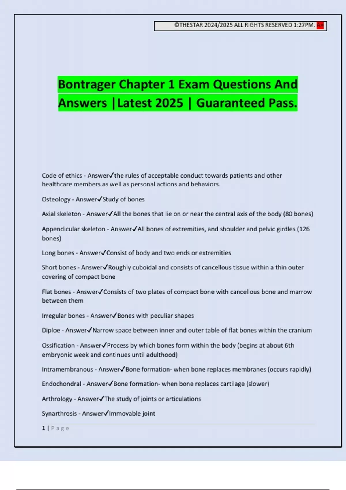 Bontrager Chapter 1 Exam Questions And Answers |Latest 2025 | Guaranteed Pass.