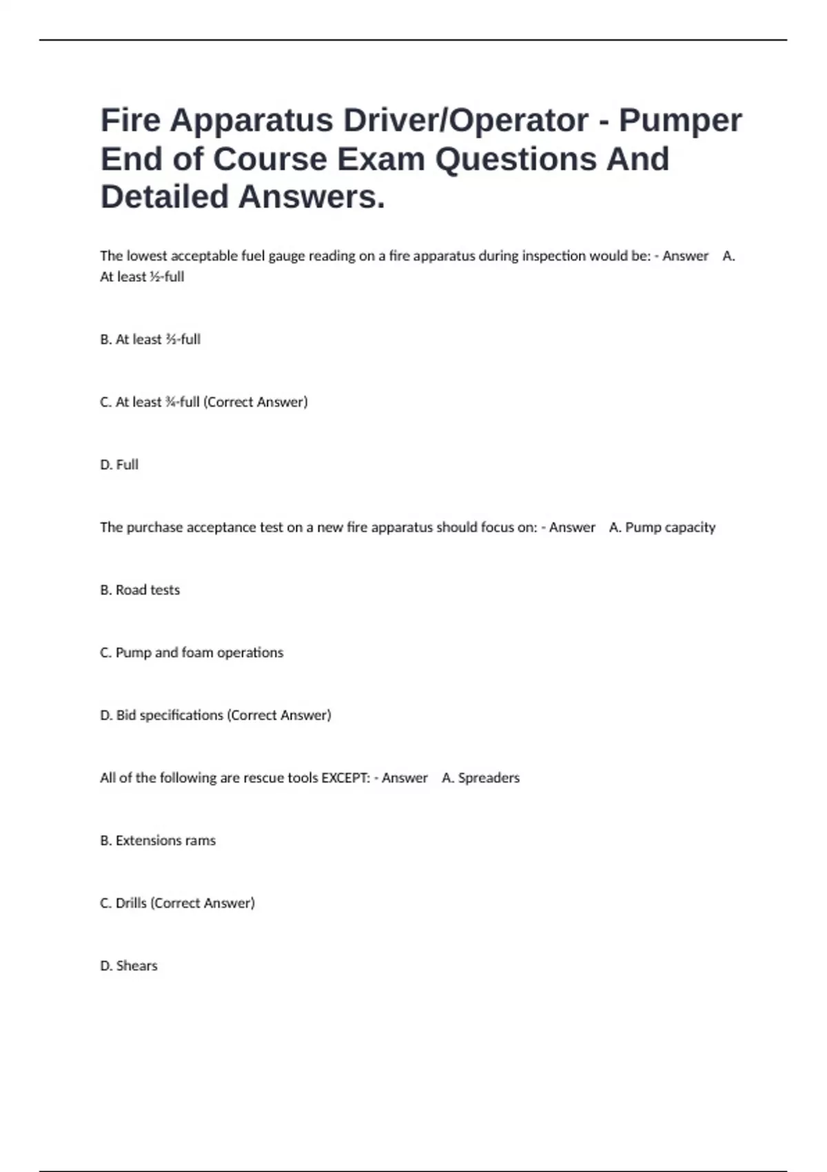 1 Exam (elaborations) Pumping Apparatus Driver/Operator Handbook 3rd Edition Final Exam And Actual Answers. 2 Exam (elaborations) Pumping and Aerial Apparatus Driver/Operator Handbook 3rd Edition Chapter 15 Review Questions And Correct Answers. 3 Exam (elaborations) Pumping and Aerial Apparatus Driver/Operator Handbook - Chapter Firefighter Knowl