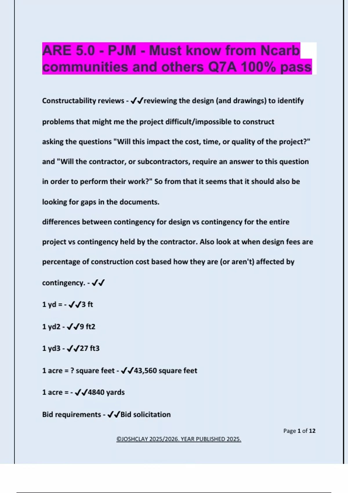 ARE 5.0 - PJM - Must know from Ncarb communities and others Q7A 100% pass