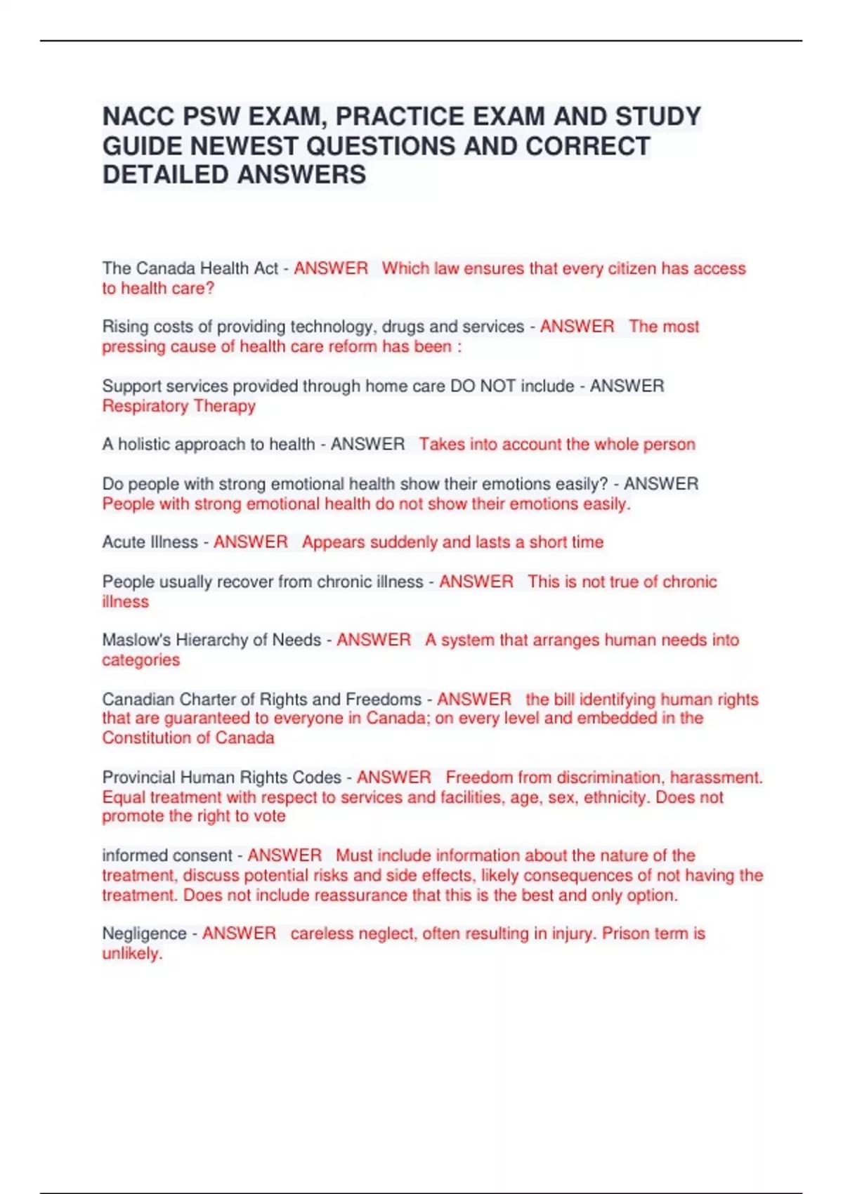 NACC PSW FINAL EXAM 2024/2025 QUESTIONS AND VERIFIED CORRECT ANSWERS/ ALREADY GRADED A++ NACC PSW FINAL EXAM 2024/2025 QUESTIONS AND VERIFIED CORRECT ANSWERS/ ALREADY GRADED A++