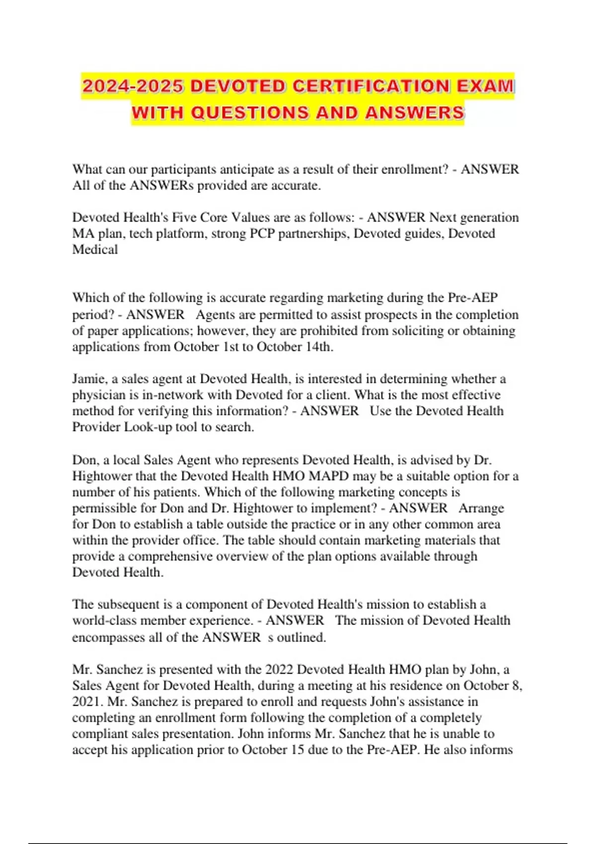 DEVOTED HEALTH AGENT CERTIFICATION EXAM QUESTIONS AND ANSWERS