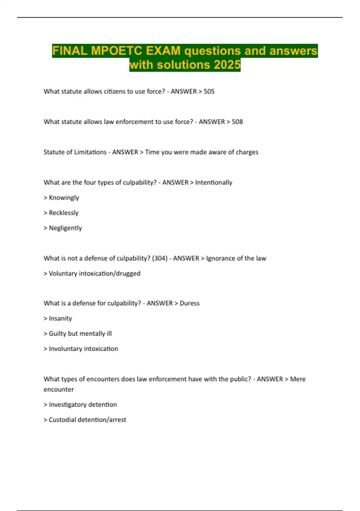 MPOETC EXAM PACKAGE DEAL QUESTIONS AND ANSWERS WITH VERIFIED SOLUTIONS UPDATED 2025