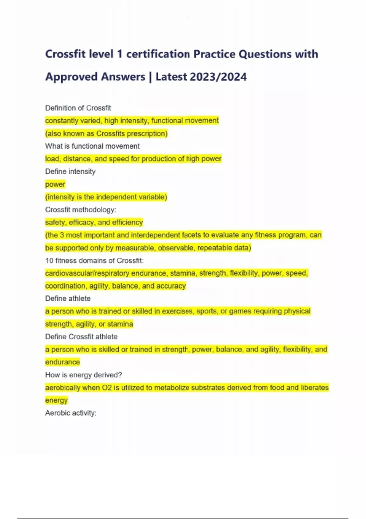 Crossfit level 1 certification Practice Questions with Approved Answers | Latest 2023/2024