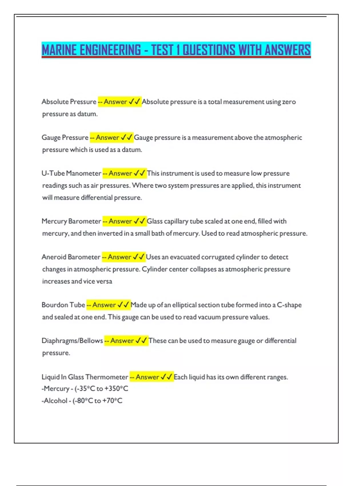 MARINE ENGINEERING - TEST 1 QUESTIONS WITH ANSWERS