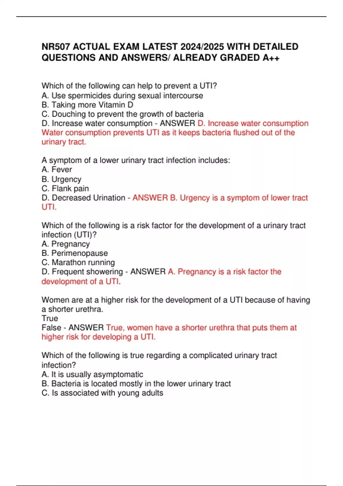 NR 507 ADVANCED PATHOPHYSIOLOGY ACTUAL EXAM LATEST 2024/2025 DETAILED QUESTIONS AND VERIFIED CORRECT ANSWERS/ ALREADY GRADED A++