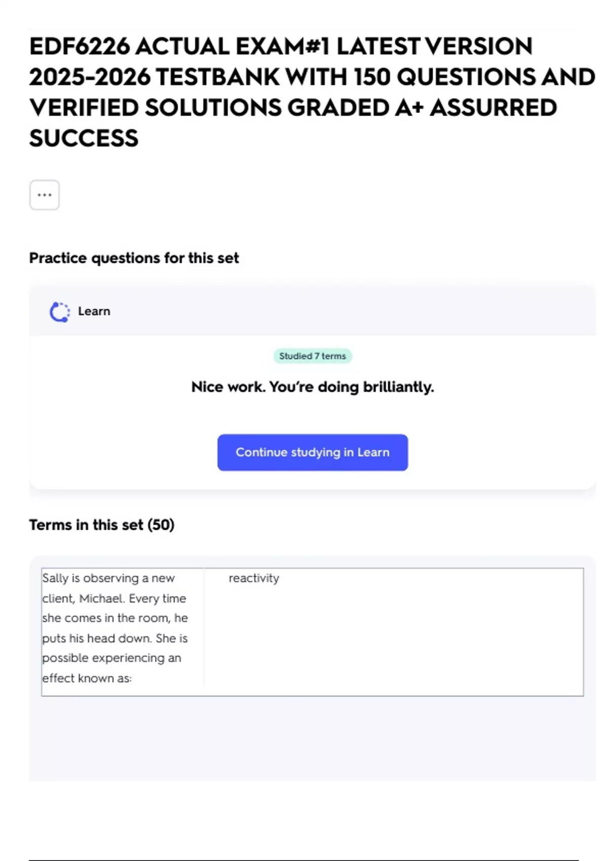 EDF 6226 ACTUAL EXAM#1 LATEST TESTBANK WITH COMPLETE SOLUTIONS BRAND NEW! 2 Exam (elaborations) EDF 6226 EXAM 2 NEWEST EXAM VERSION QUESTIONS WITH VERIFIED ANSWERS GRADED A+ ASSURED SUCCESS 3 Exam (elaborations) EDF6226 ACTUAL EXAM#1 LATESTVERSION TESTBANK WITH 150 QUESTIONS AND VERIFIED SOLUTIONS GRADED A+ ASSURRED