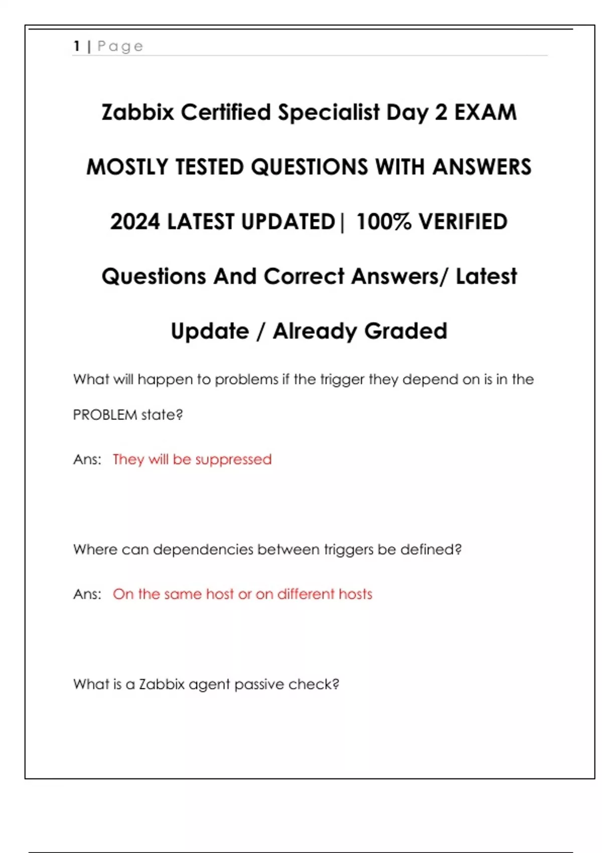 Zabbix Questions And Correct Answers/ Latest Update / Already Graded