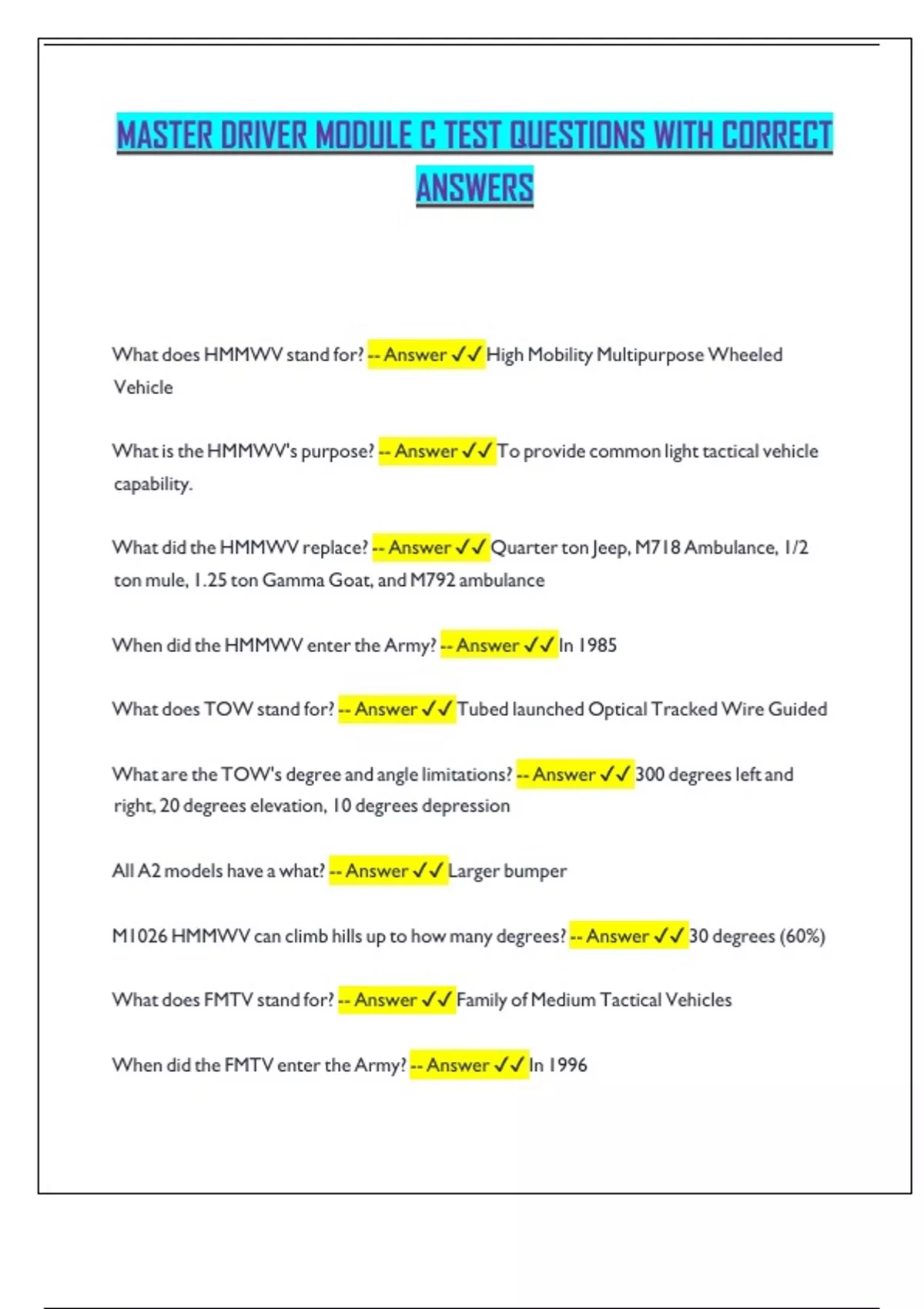 MASTER DRIVER TRAINER MODULE B TEST QUESTIONS WITH VERIFIED ANSWERS.