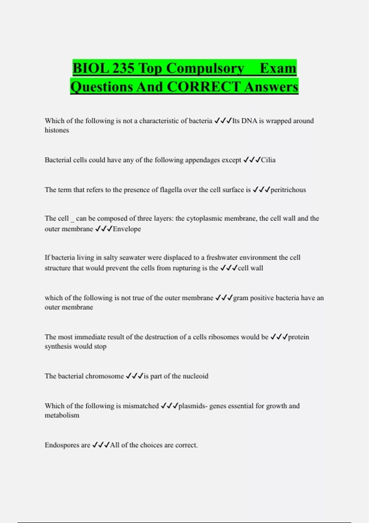 BIOL 235 Top Compulsory Exam Questions And CORRECT Answers