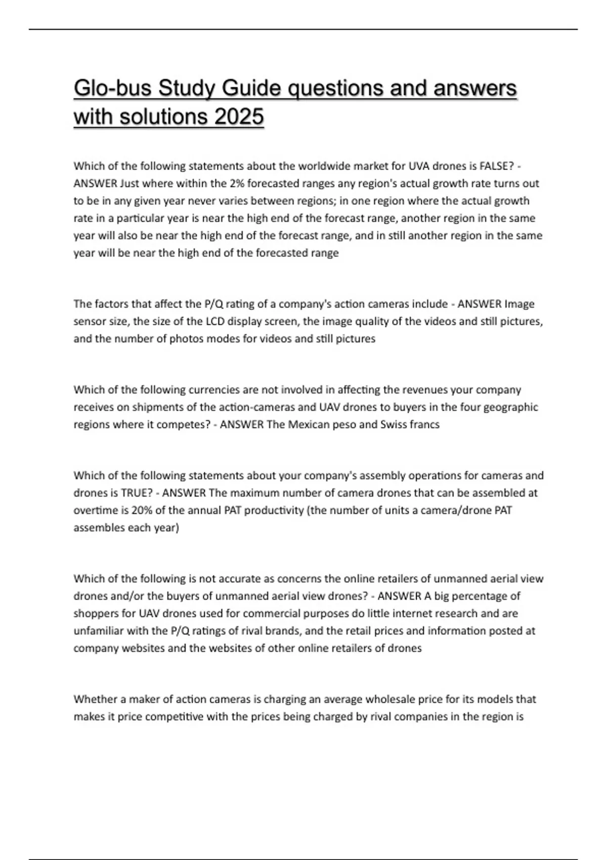 GLO-BUS EXAM PACKAGE DEAL QUESTIONS AND ANSWERS WITH VERIFIED SOLUTIONS UPDATED 2025