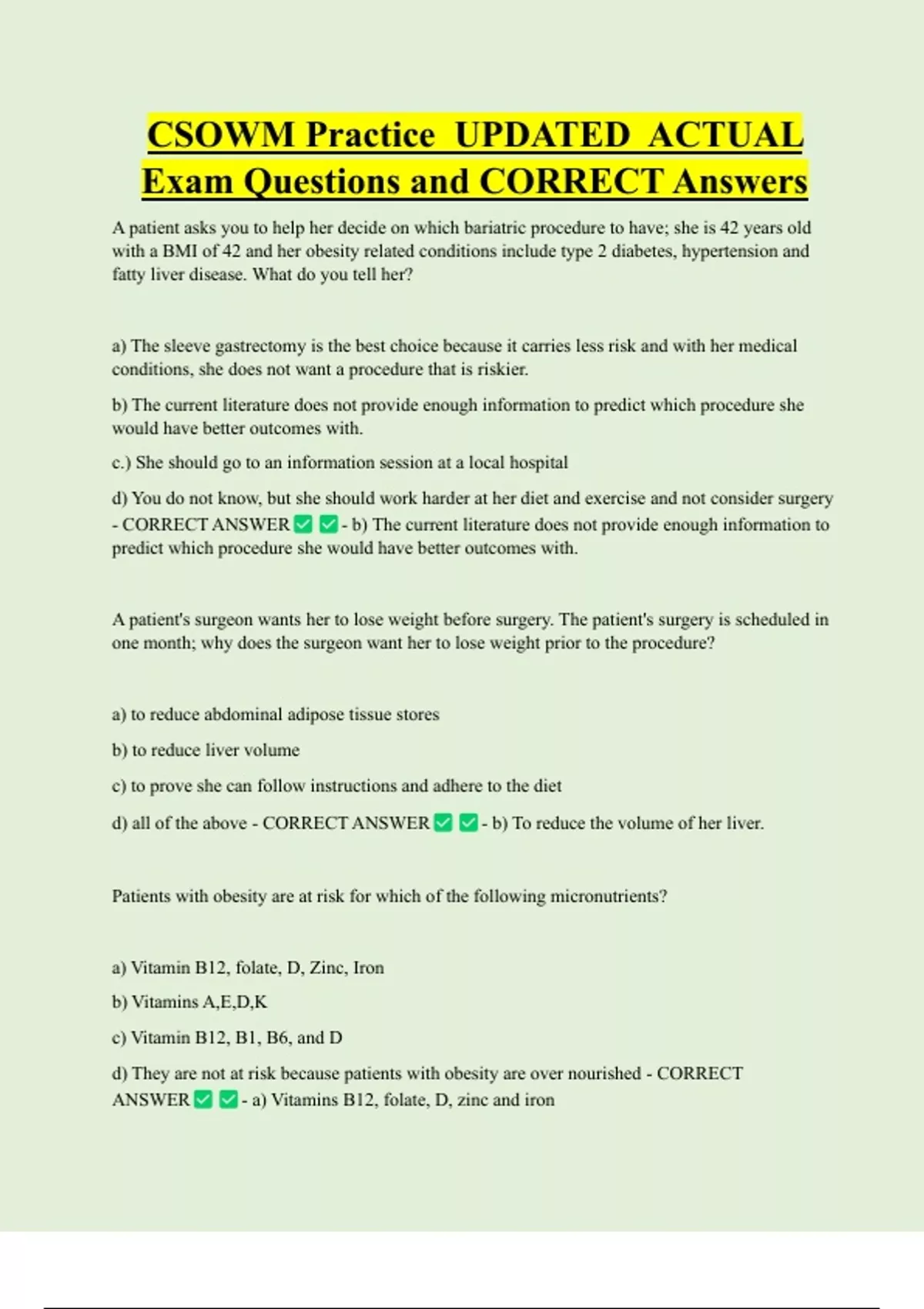 CSOWM Bundled Exam Questions WITH CORRECT Answers