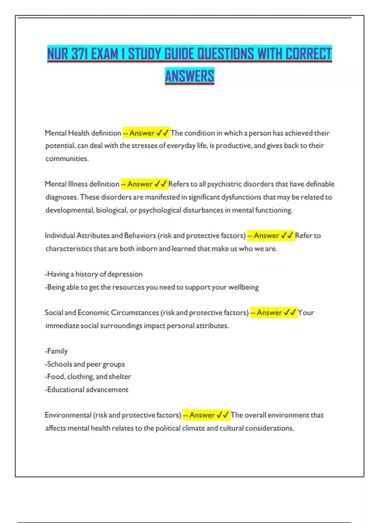 NUR 371 EXAM 1 STUDY GUIDE QUESTIONS WITH CORRECT ANSWERS.