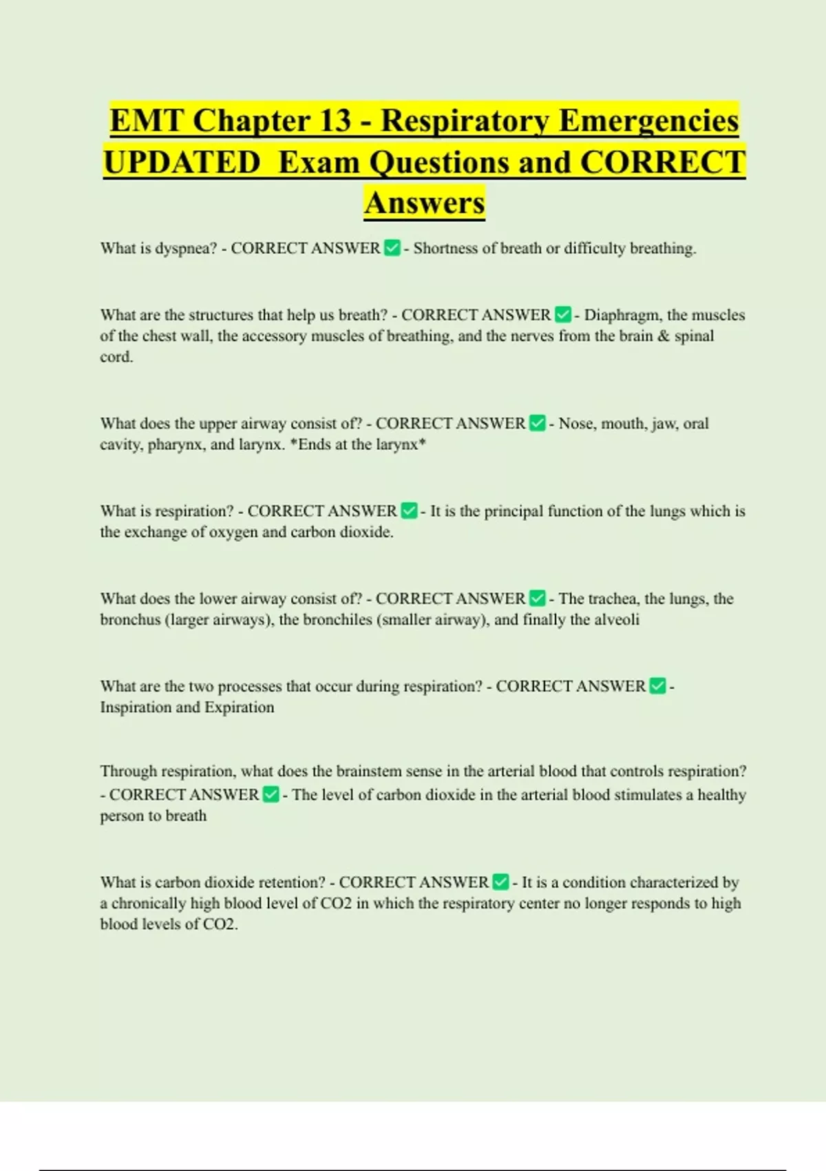 Respiratory Emergencies Bundled Exam Questions WITH CORRECT Answers