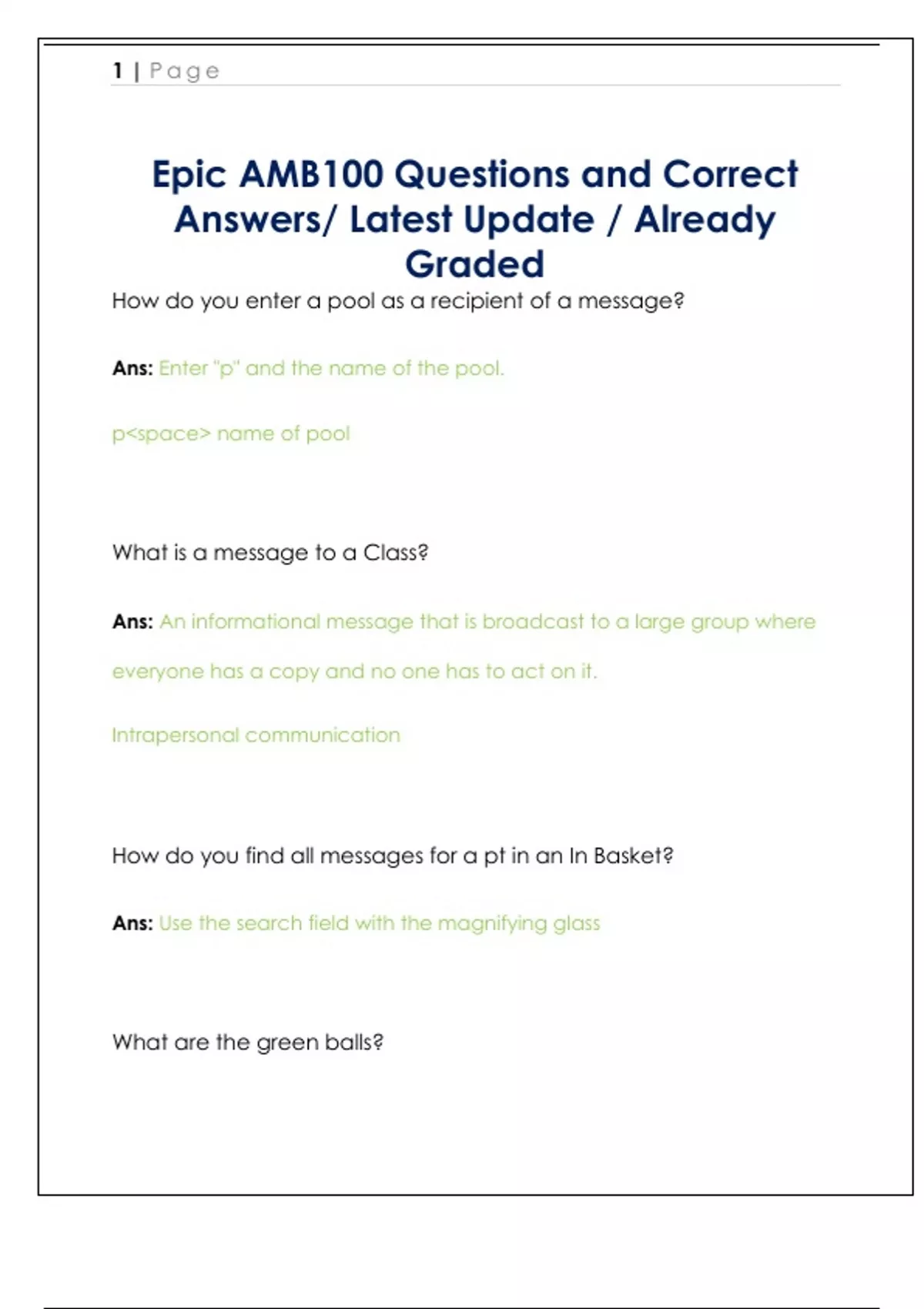Epic AMB100 Questions and Correct Answers/ Latest Update / Already Graded