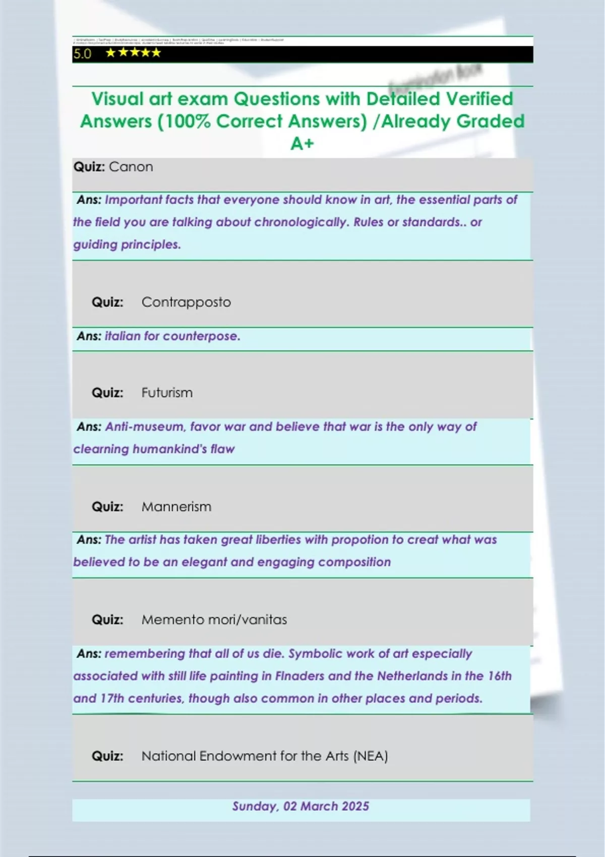 Visual Arts 2TTO Questions with Detailed Verified Answers (100% Correct Answers) /Already Graded A+