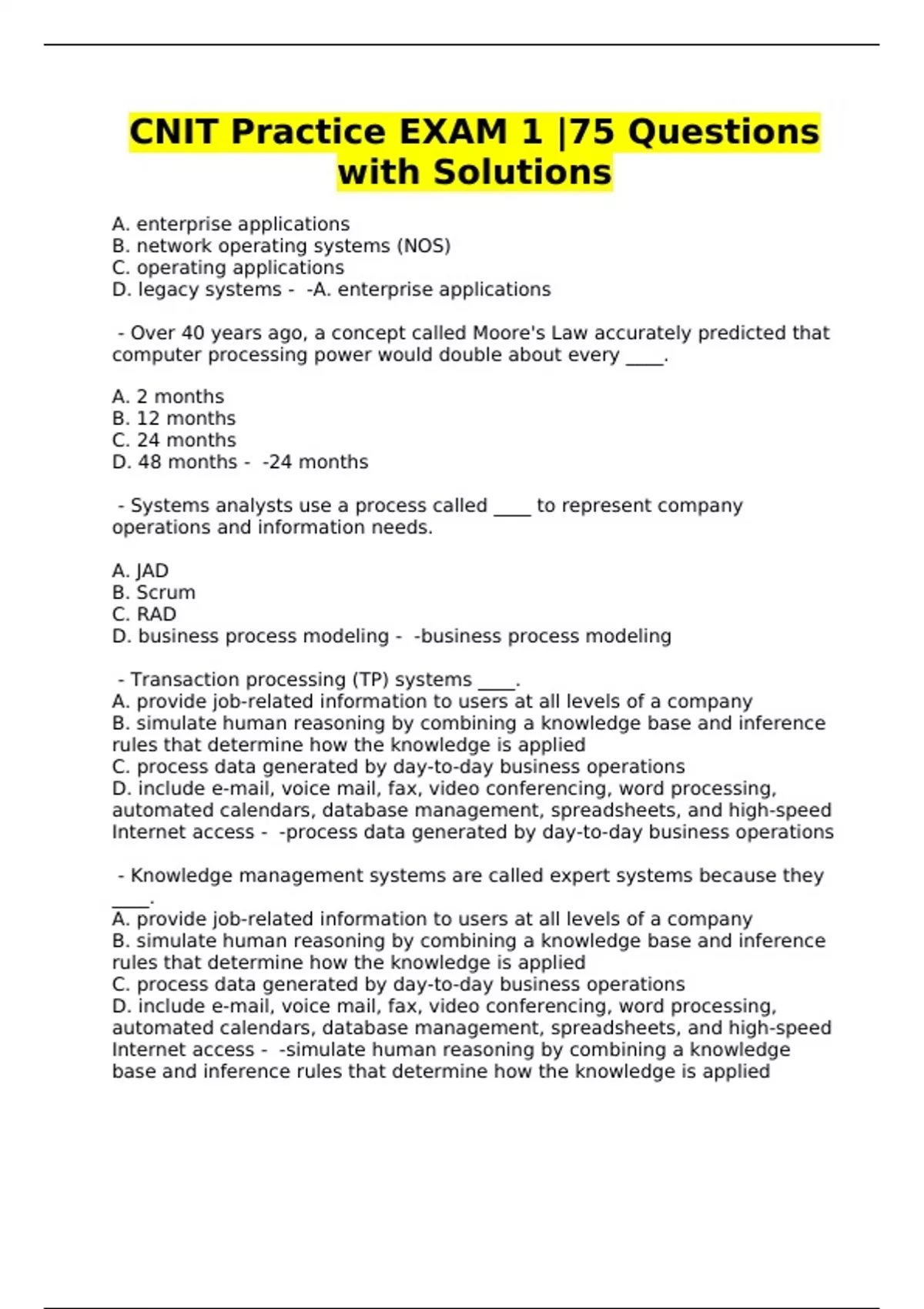 CNIT EXAMS - Q'S AND A'S - BUNDLE