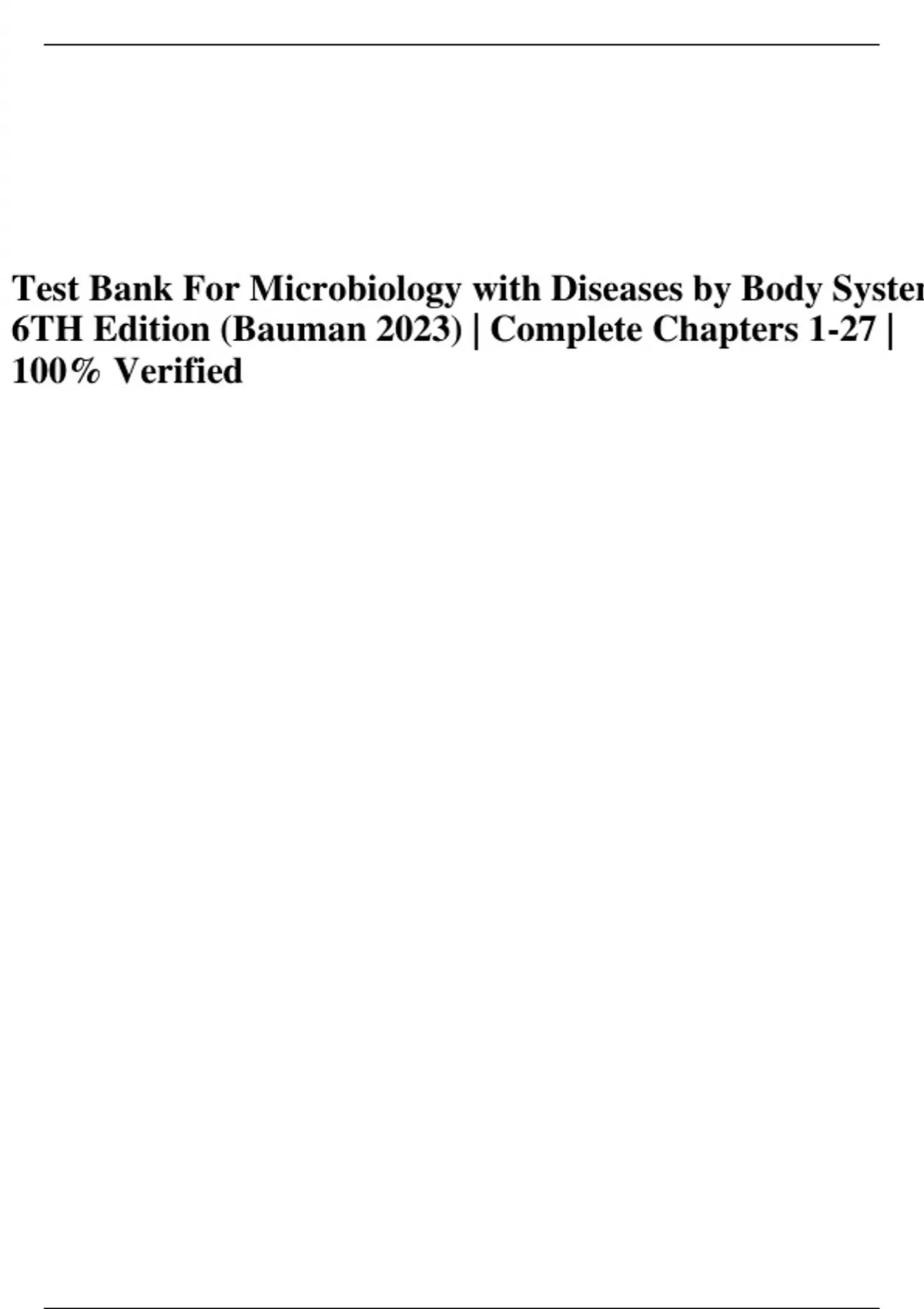 Test Bank For Microbiology with Diseases by Body System 6TH Edition (Bauman 2023) | Complete Chapters 1-27 | 100% Verified
