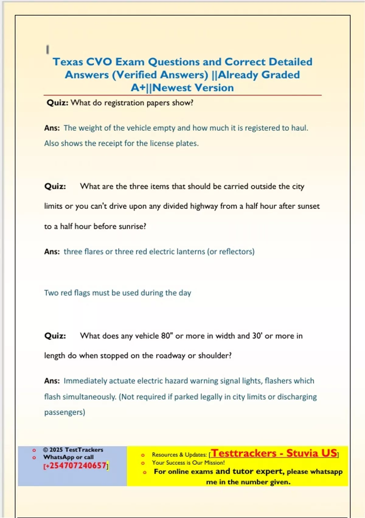 Texas CVO Knowledge Exam (Texas Rules) SR Questions and Correct Detailed Answers (Verified Answers) ||Already Graded A+||Newest Version