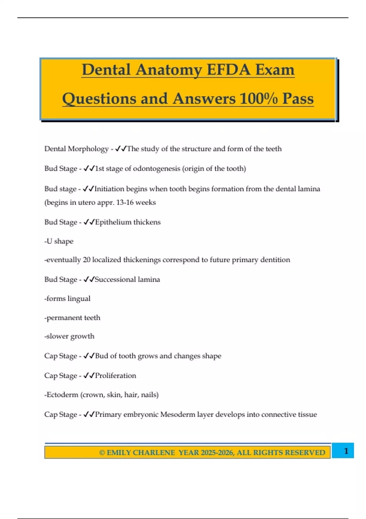EFDA Dental Bundled Exams Questions and Answers 100% Pass Guaranteed