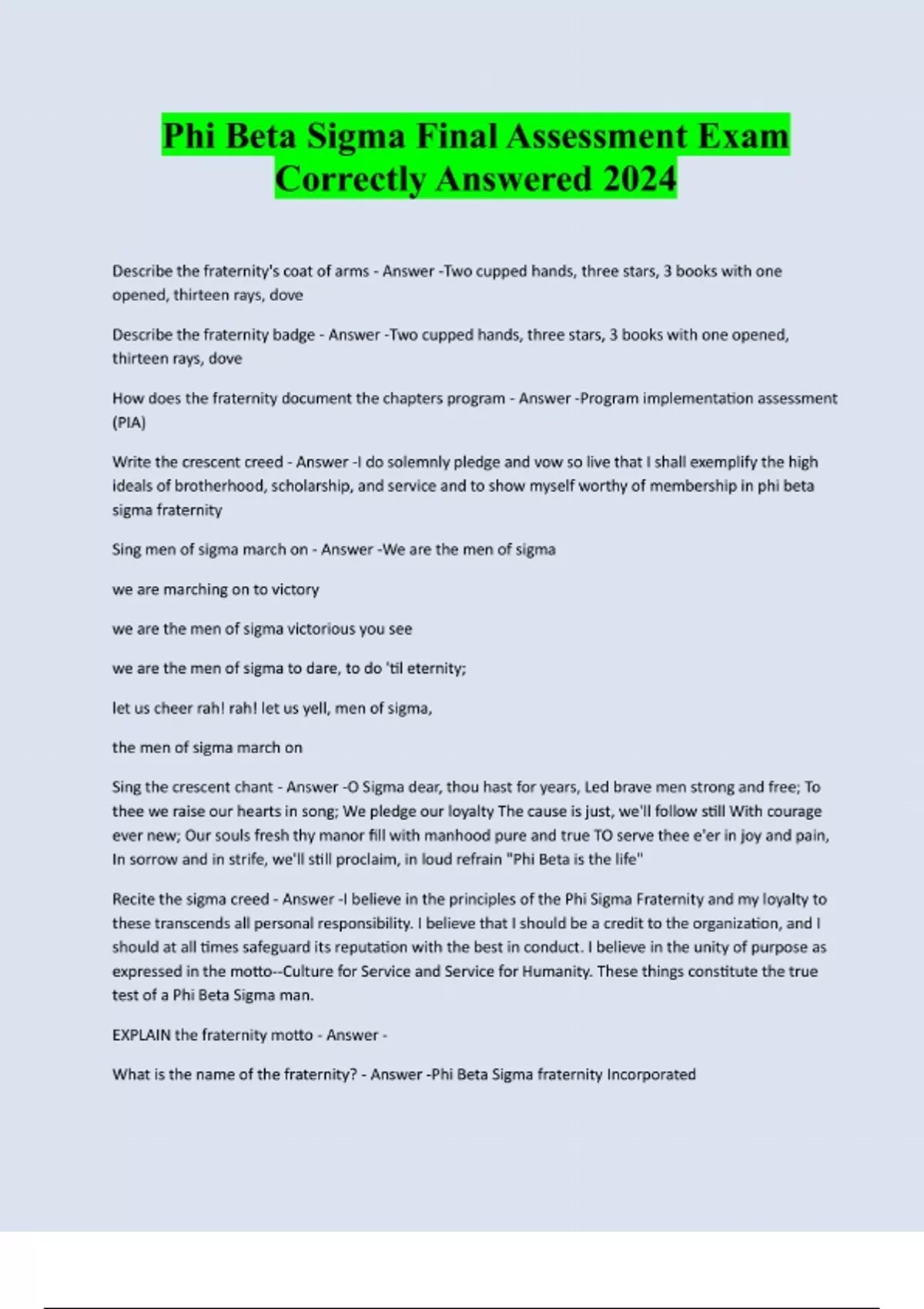 Phi Beta Sigma Packaged Exams Correctly Solved :::Latest Update 2024/2025