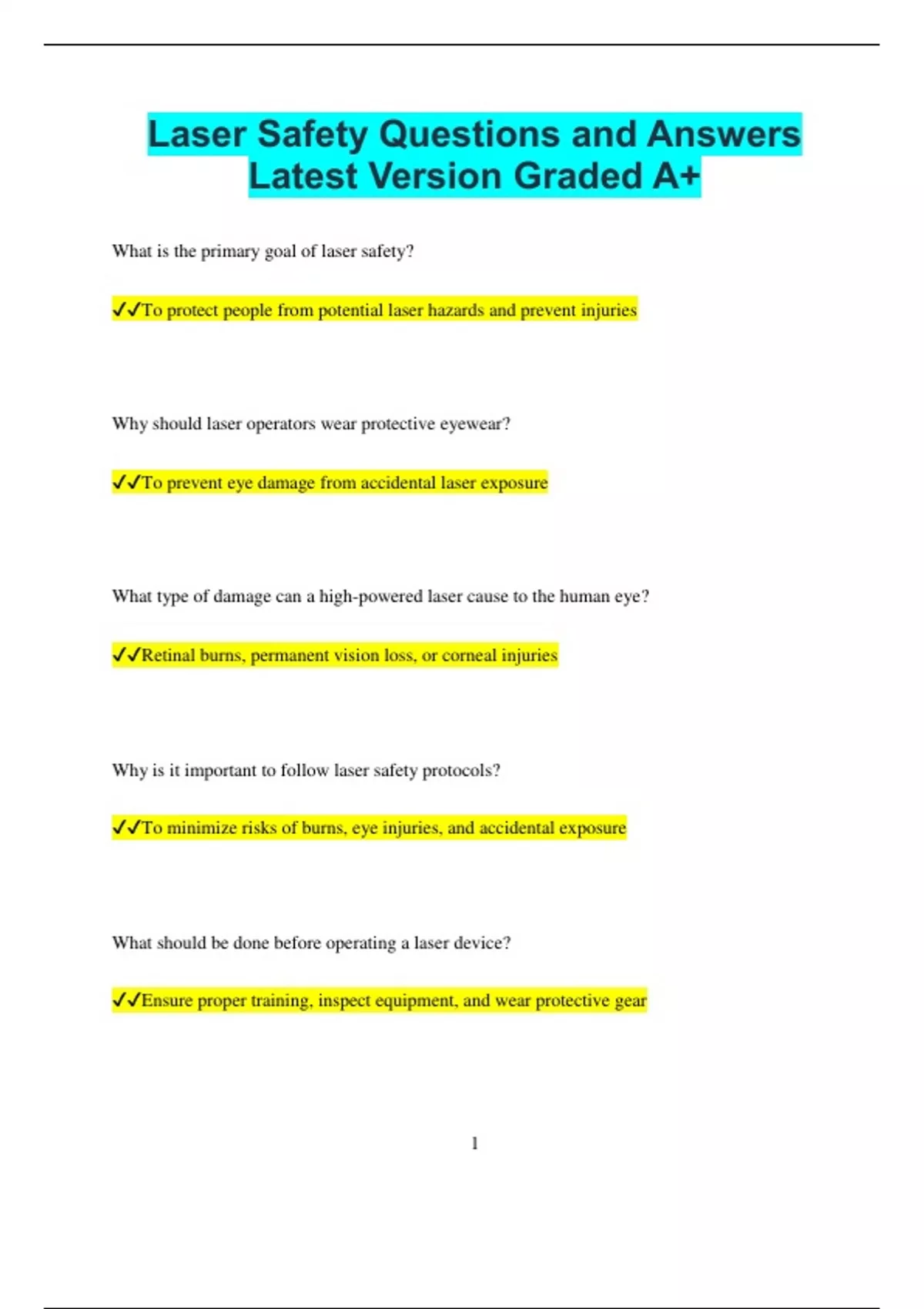 Laser Safety Questions and Answers Latest Version Graded A+