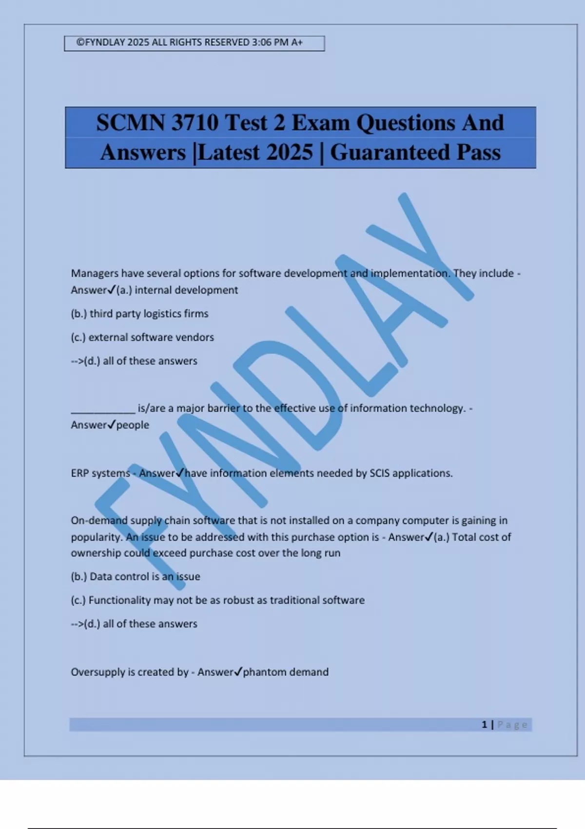 SCMN 3710 Bundled Exams Questions and Answers 100% Pass Guaranteed