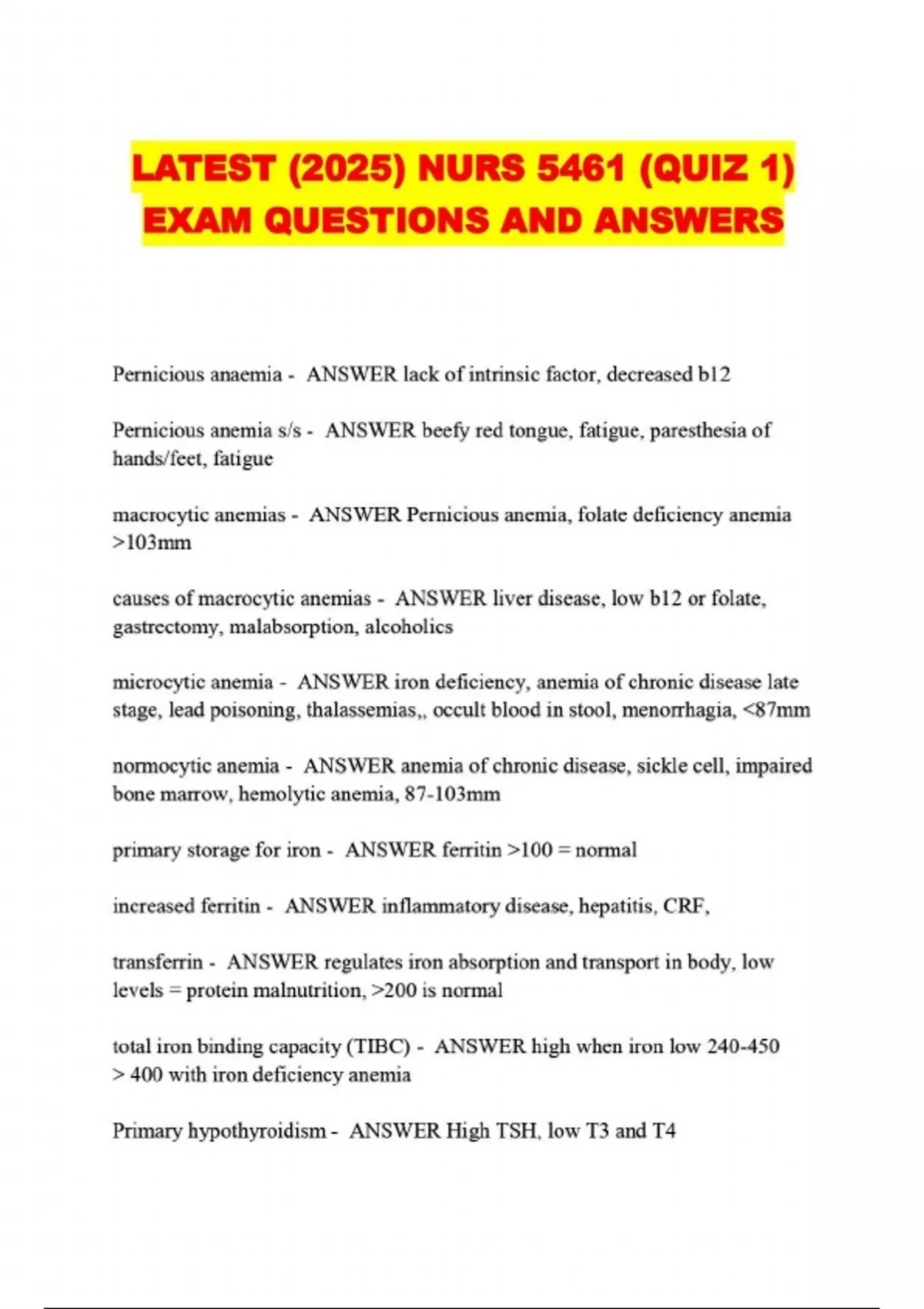 ALL NURS 5461 / NURS5461 PACKAGED EXAMS: QUESTIONS WITH 100% VERIFIED ANSWERS