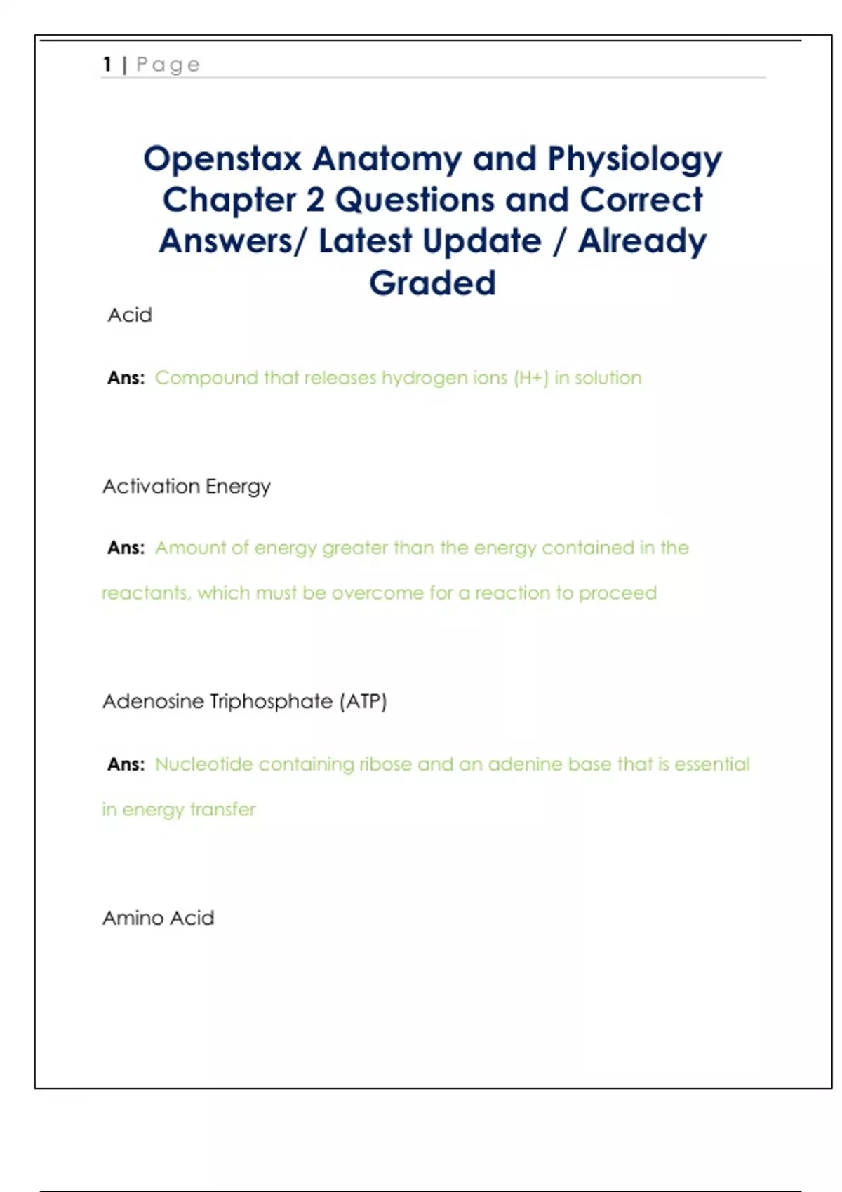 Anatomy and Physiology Questions and Correct Answers/ Latest Update / Already Graded